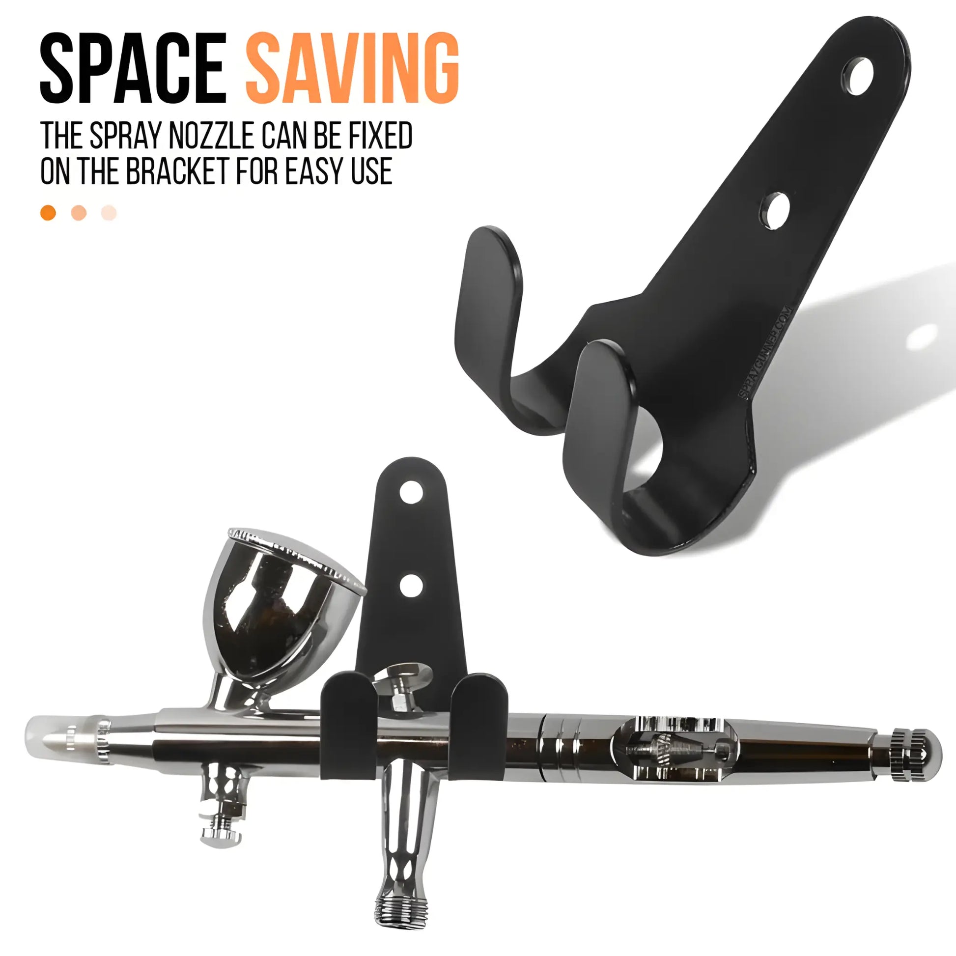 - The hook can be mounted on the wall or workbench to hold the airbrush