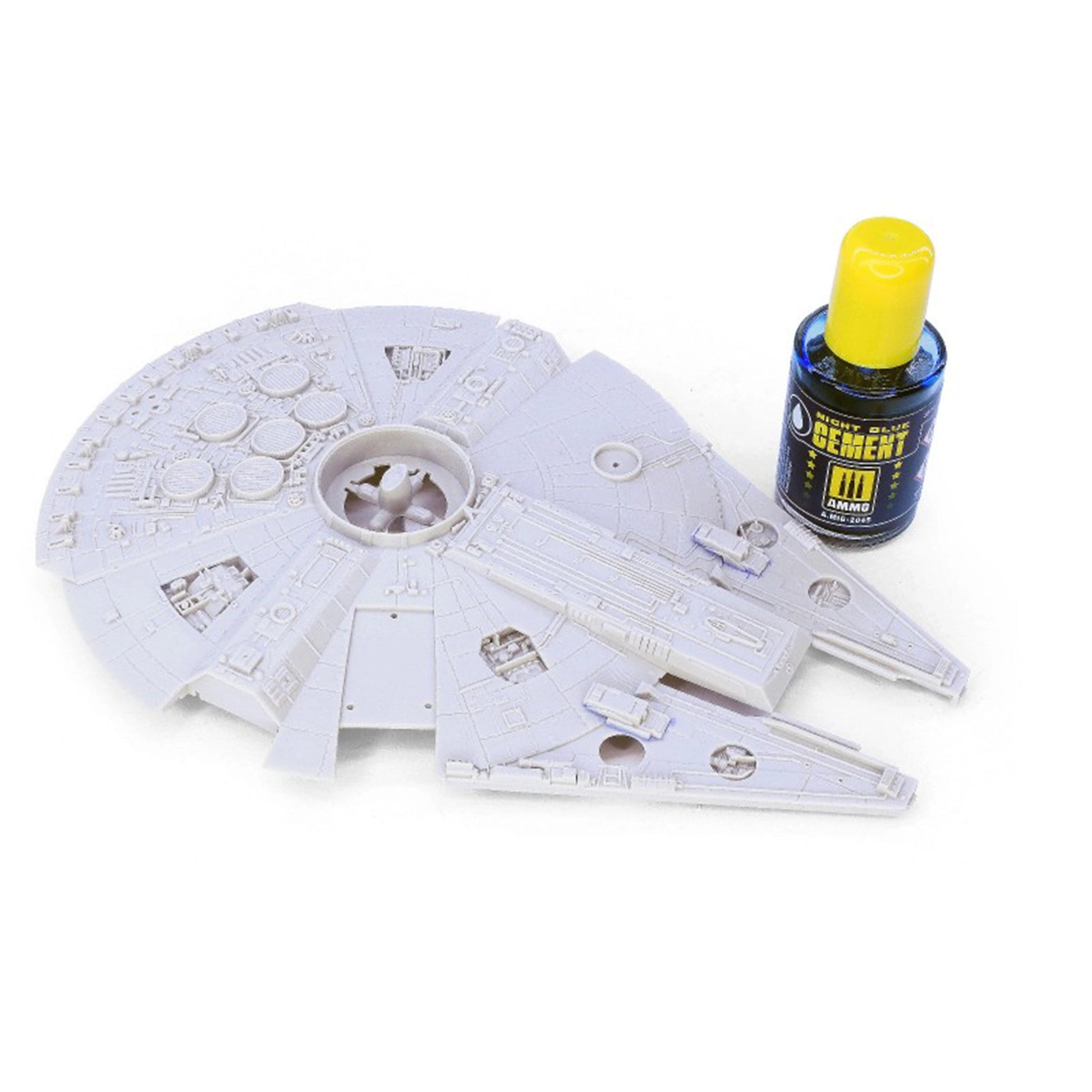 Blue-colour extra-thin cement for use in assembling plastic scale models.