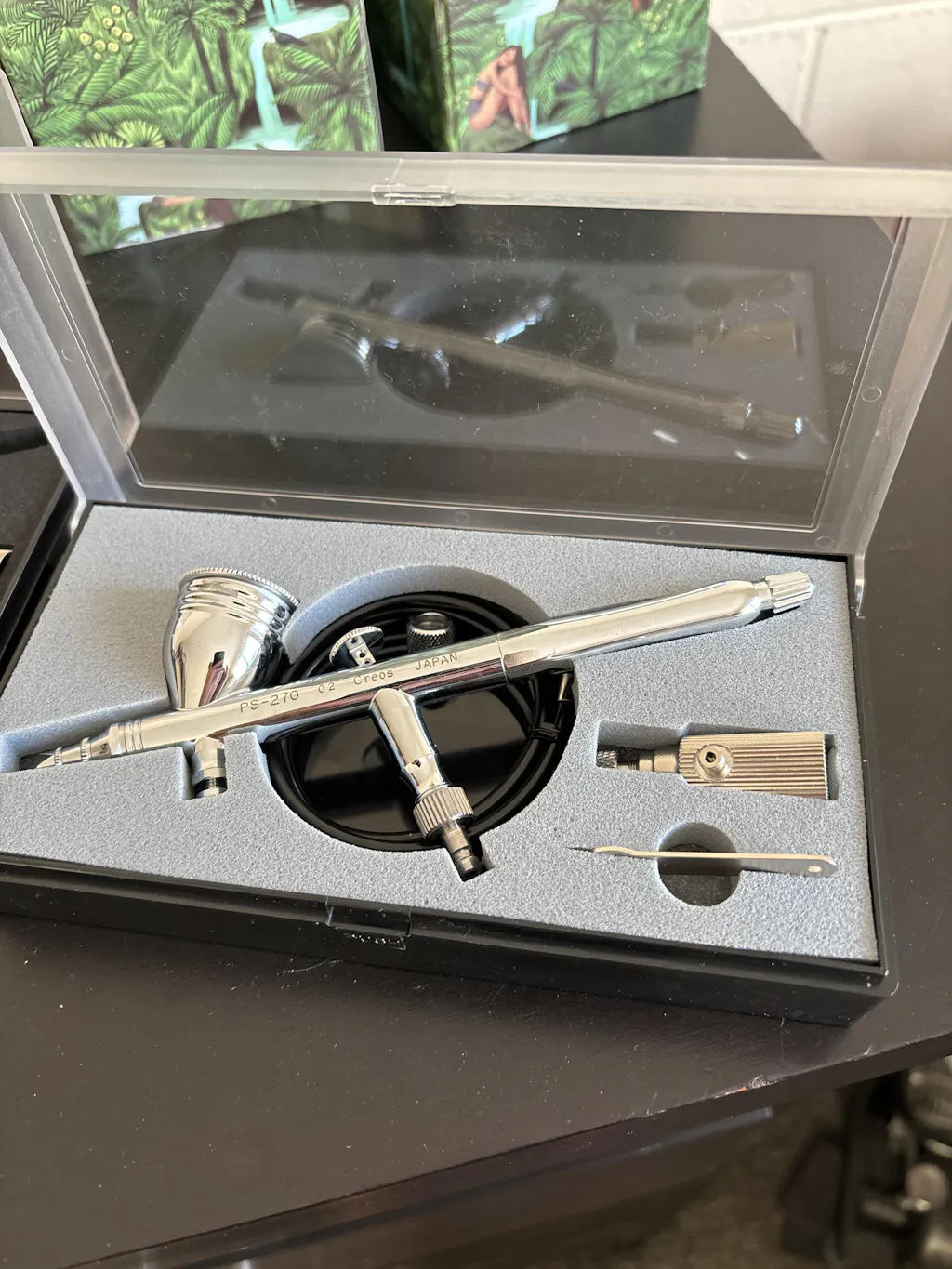 The PS-270 is a double action gravity feed detail airbrush made for tight lines, controlled shading, and precision work in modeling, illustration, and fine-detail projects. It includes a built-in air valve (MAC) for quick airflow tuning right on the airbrush.