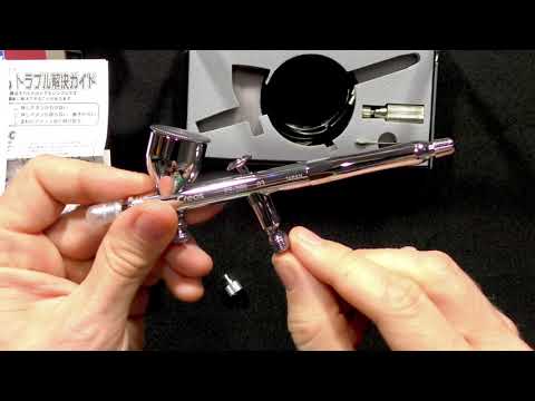 This model features needle travel adjustment for setting paint flow limits and a built-in air valve (MAC) so air pressure can be fine-tuned directly on the airbrush. The 4-part head system supports consistent airflow and makes cleaning easier.