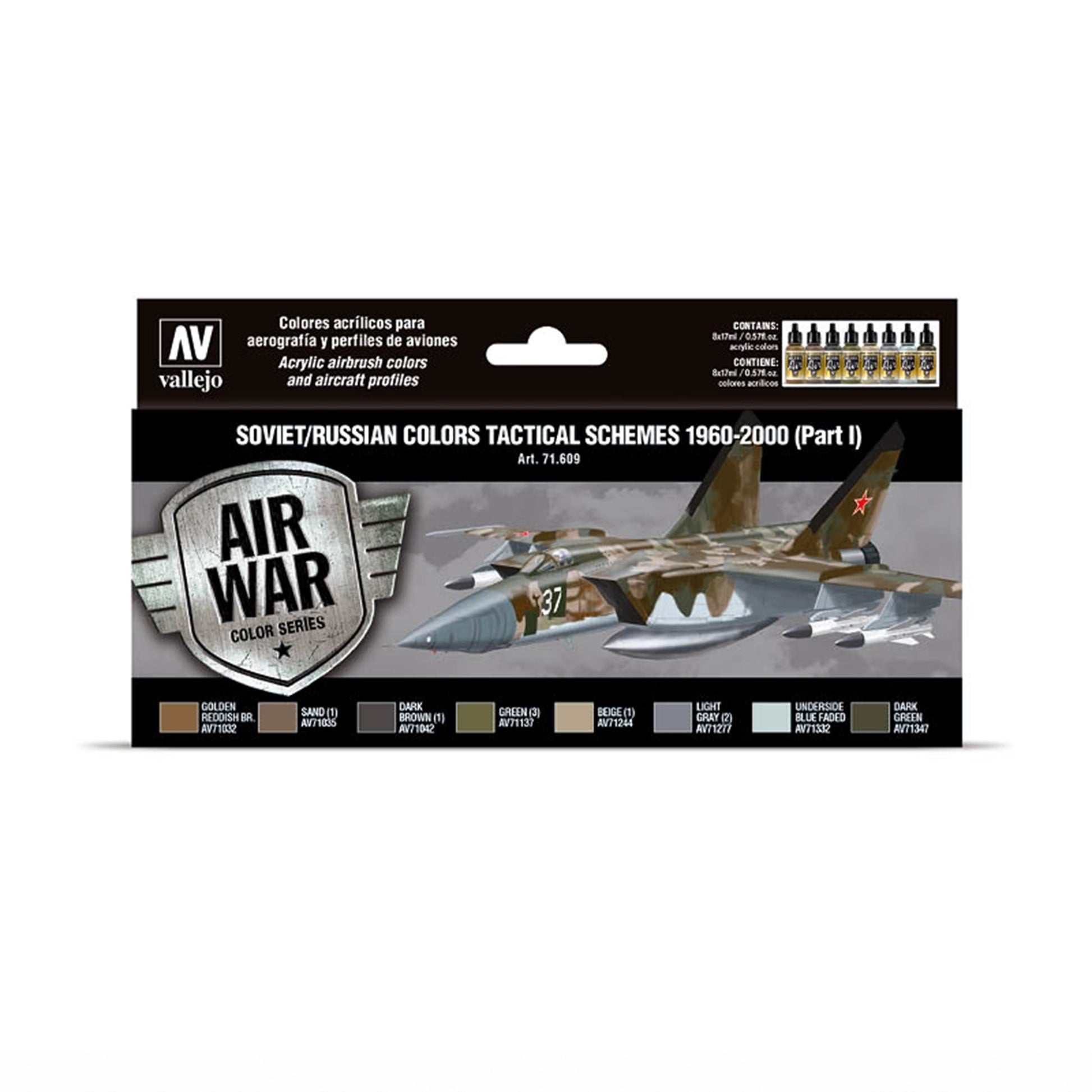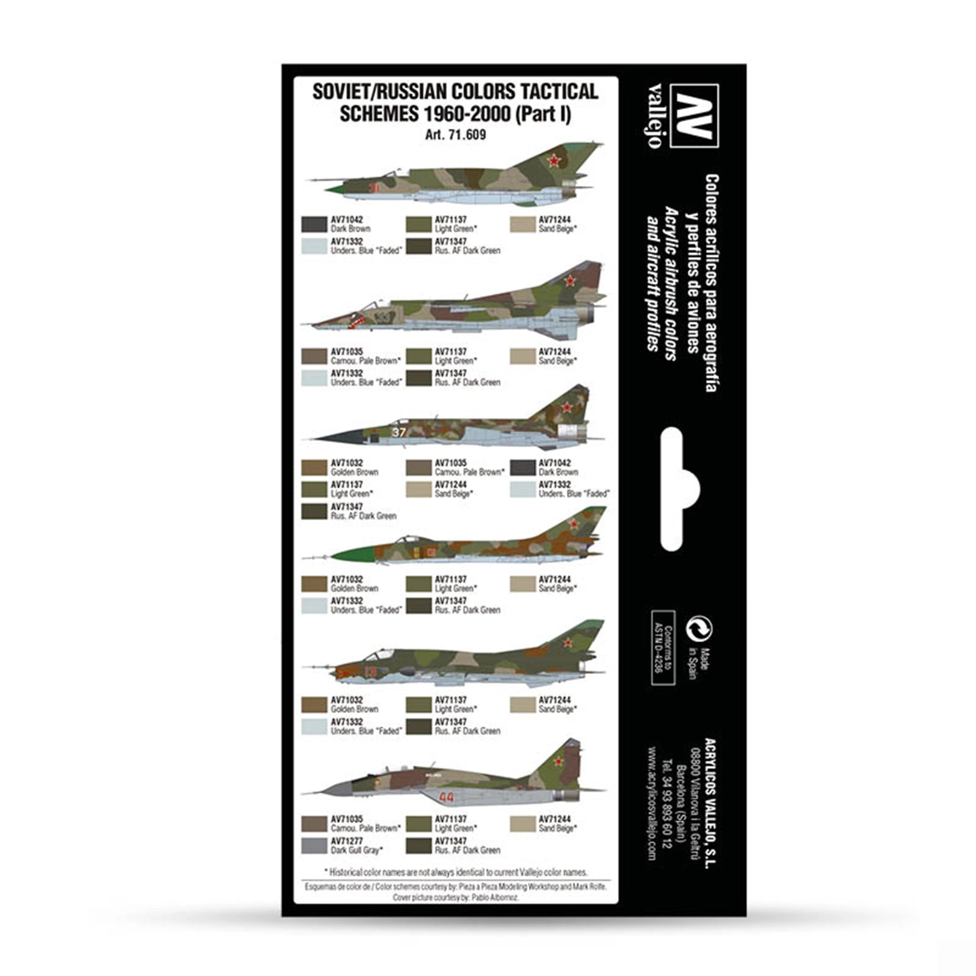 Set with Model Air colors developed for painting different models of the Soviet Air Force (currently Russian Federation) during the “Cold War” and the subsequent collapse of the Eastern Bloc. The set includes profiles of the aircraft, the colors needed and a detailed description of their application.