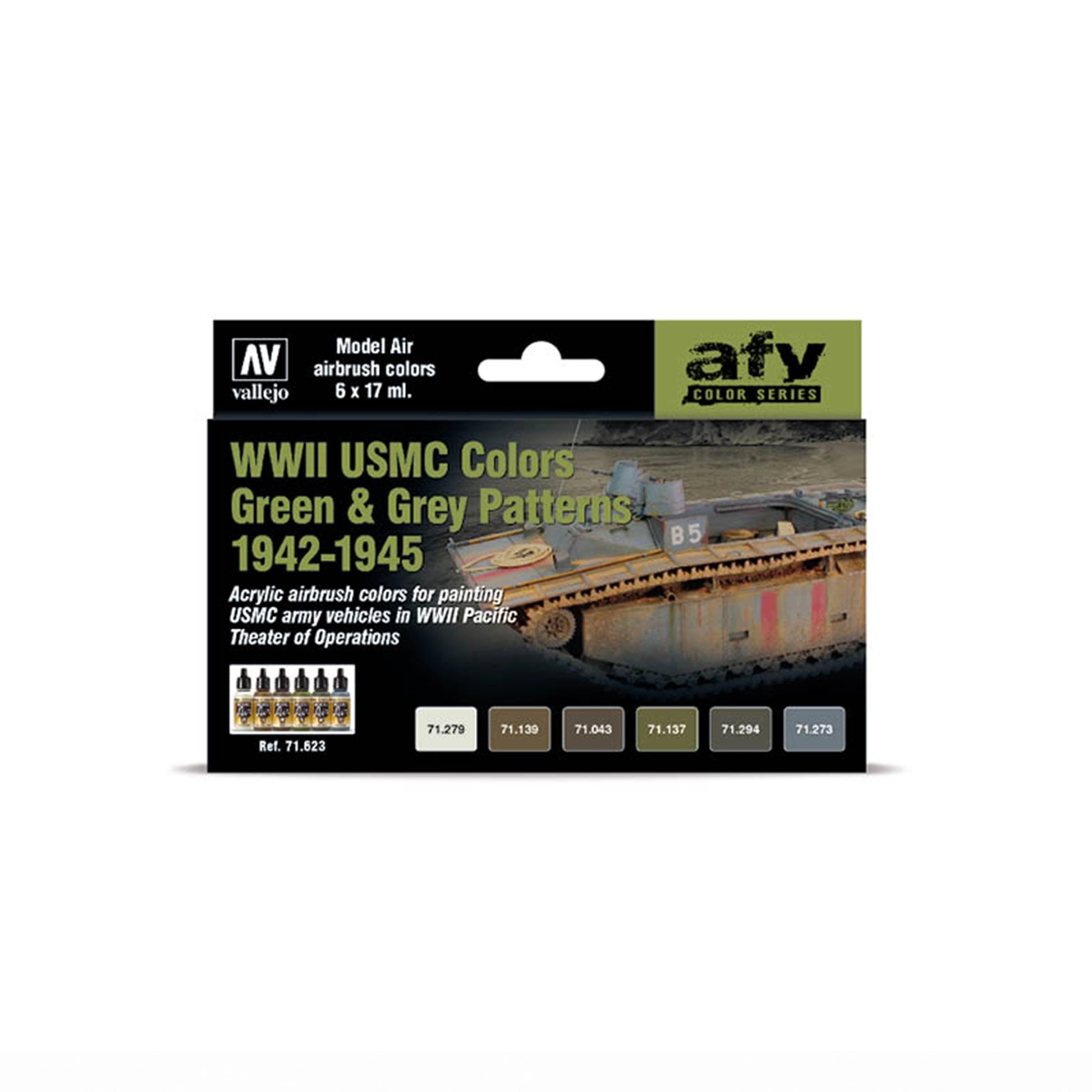 Vallejo Model Air Set: WWII USMC Colors Green & Grey Patterns 1942-1945