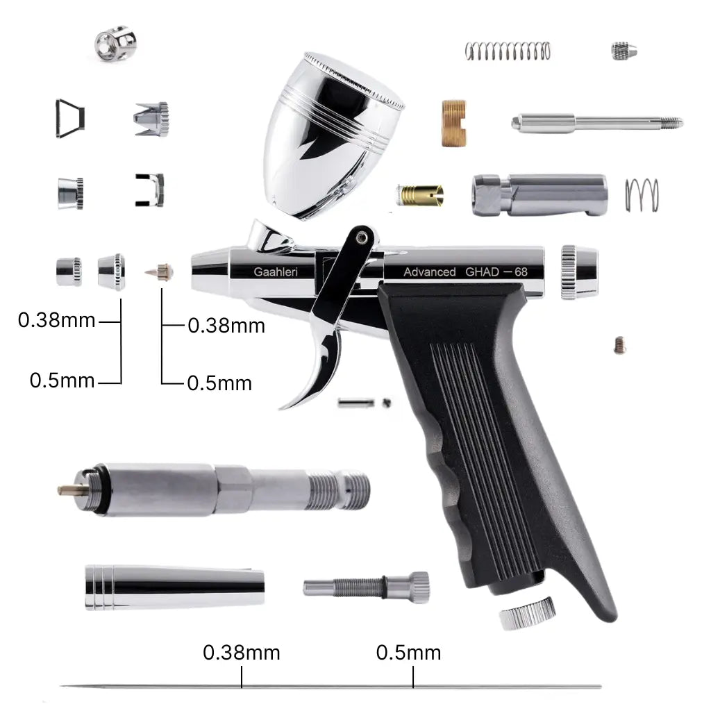 Ensure top performance for your Airbrush Parts for GAAHLERI Advanced Series GHAD-68 Airbrush with high-quality replacement parts designed specifically for your airbrush. This collection includes nozzles, needles, air valves, and O-rings, all essential for maintaining peak performance.