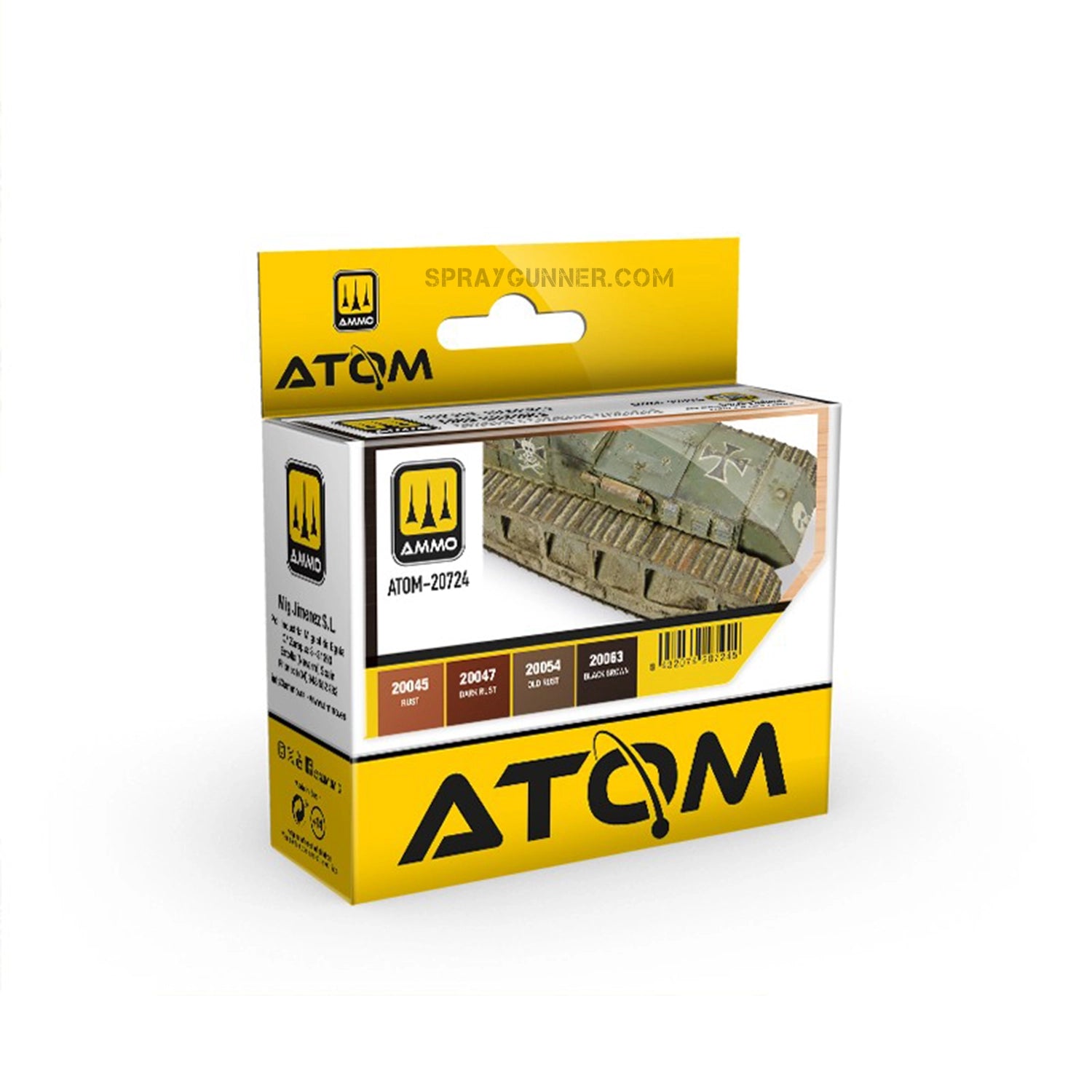 ATOM acrylic paint set designed for painting rust and tracks. It contains the necessary shades to achieve the typical rust finish of armoured vehicle tracks, among others. With these colours, you can also simulate any type of rusted metal or accessory used for models or dioramas. This set includes colours that can be used as a base, as well as different light and dark shades for creating various effects.