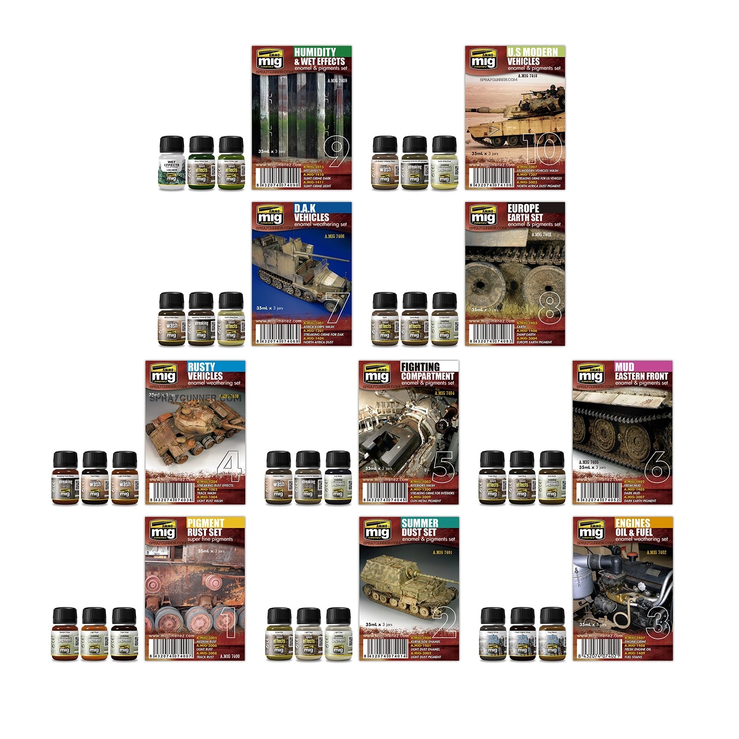 Each individual set combines enamel washes, streaking effects, and fine pigment powders, offering everything you need to add realistic weathering to your models with ease.