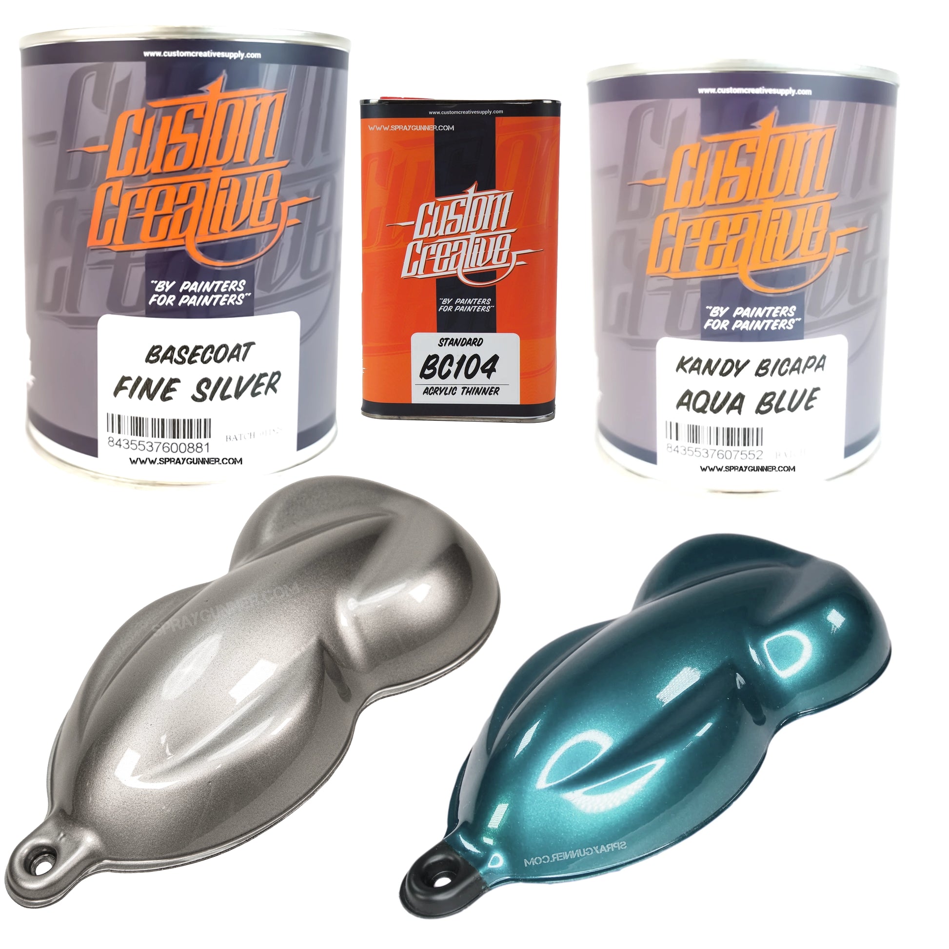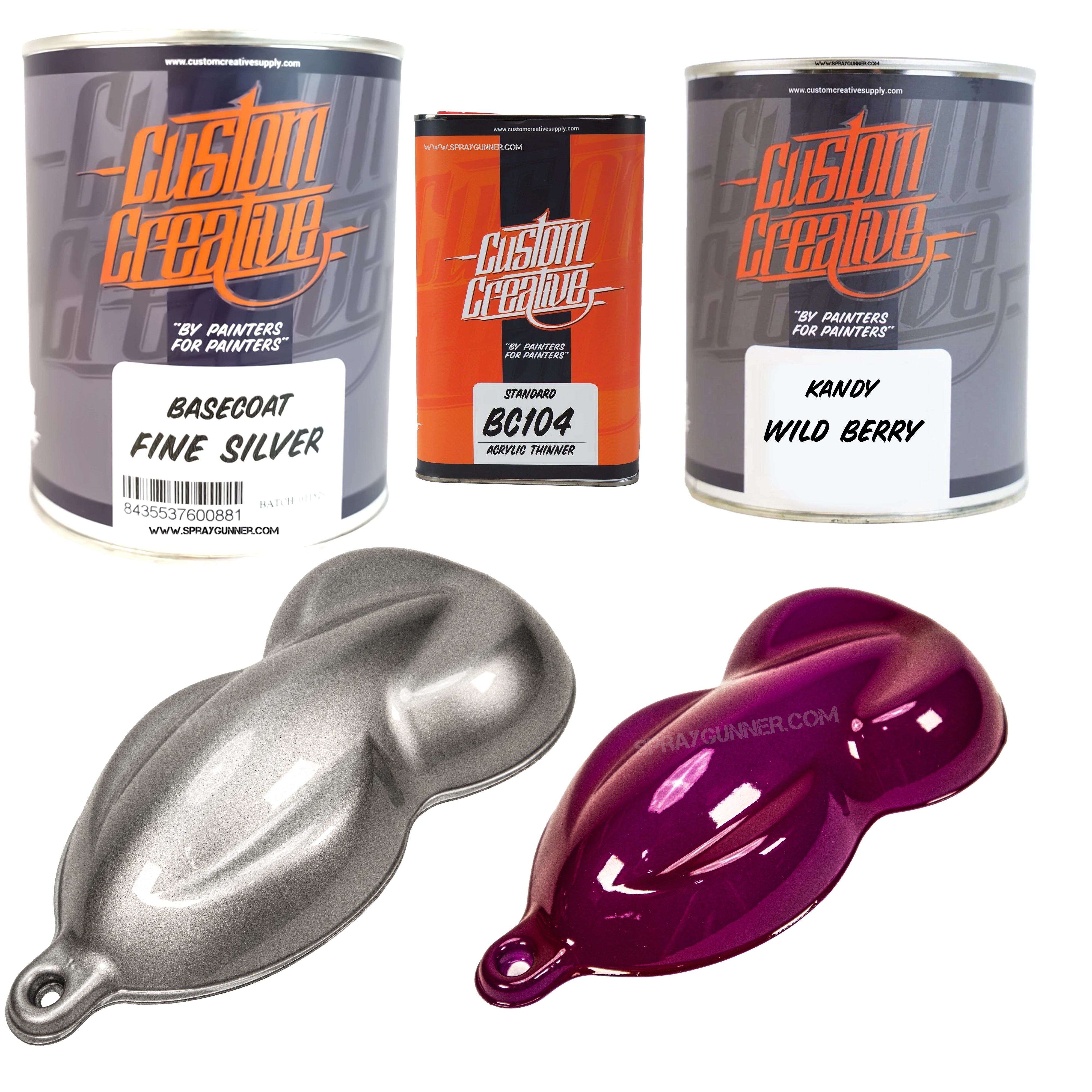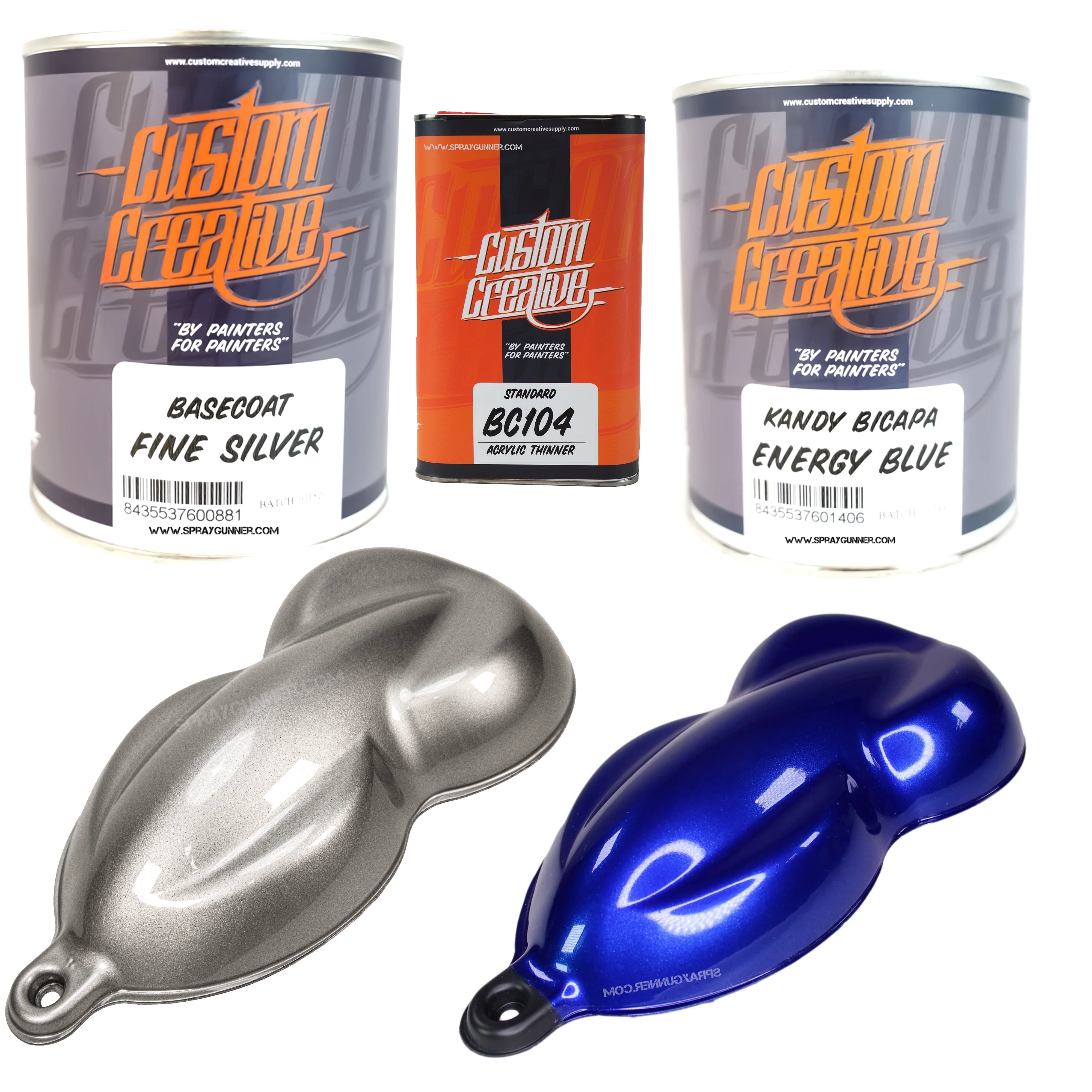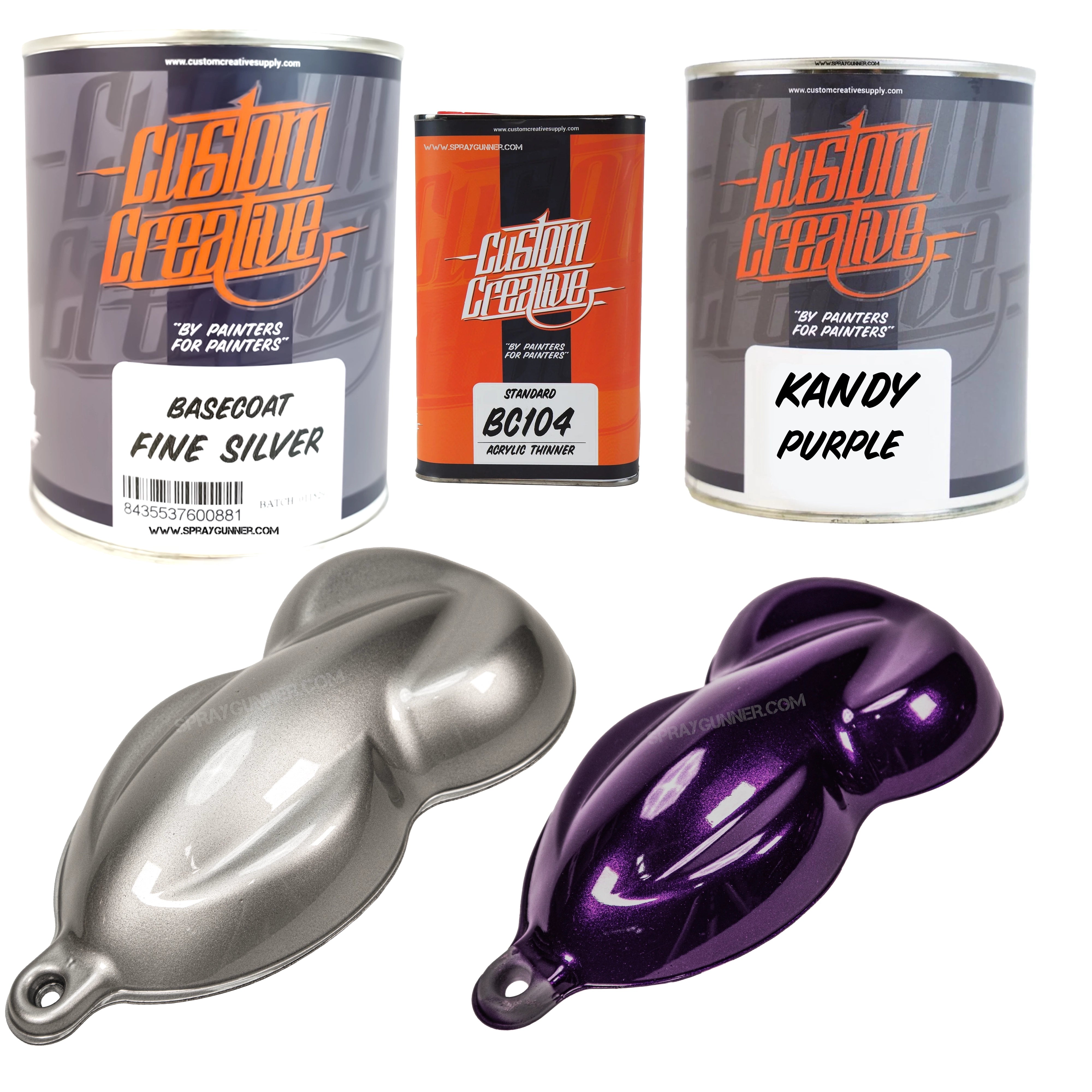 Upgrade your custom paint workflow with the Custom Creative Fine Silver + Kandy Paint Set, pairing a brilliant metallic base with your choice of high-intensity 1-liter Kandy colors. Whether you're creating deep candy fades, bold graphics, or high-impact show finishes, this set gives you exceptional coverage, easy application, and unmatched vibrancy—perfect for automotive, custom bikes, helmets, fine art, airbrush work, and more.