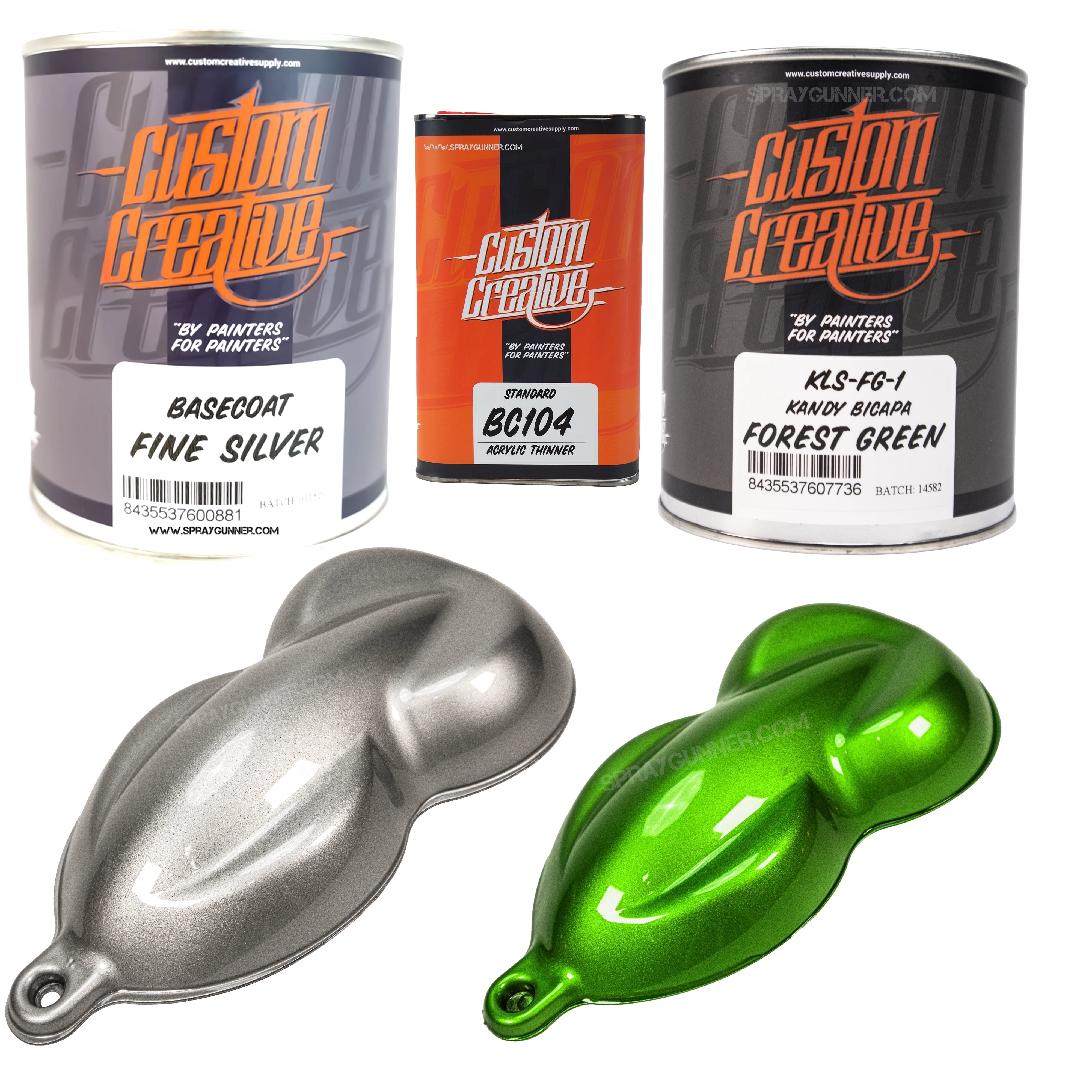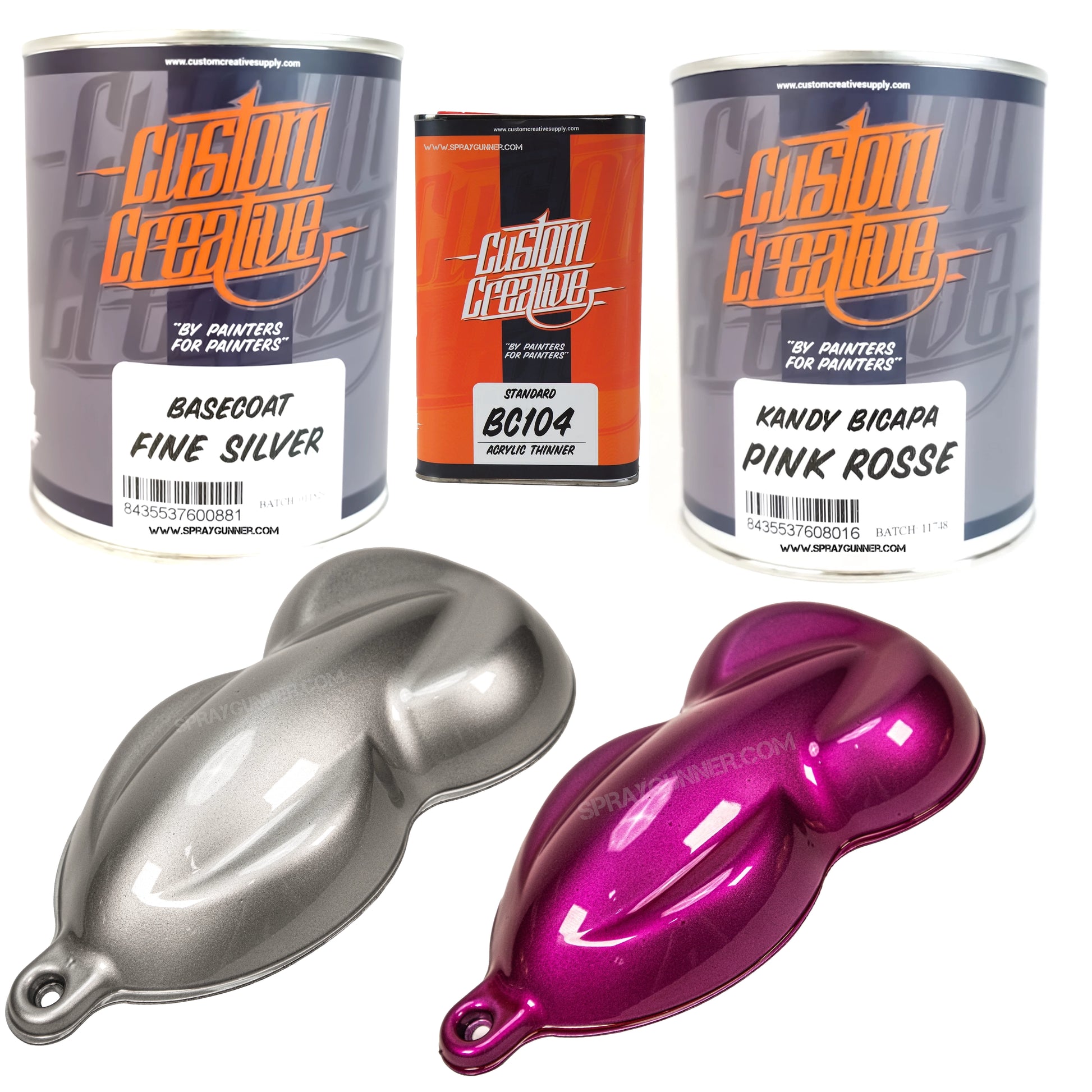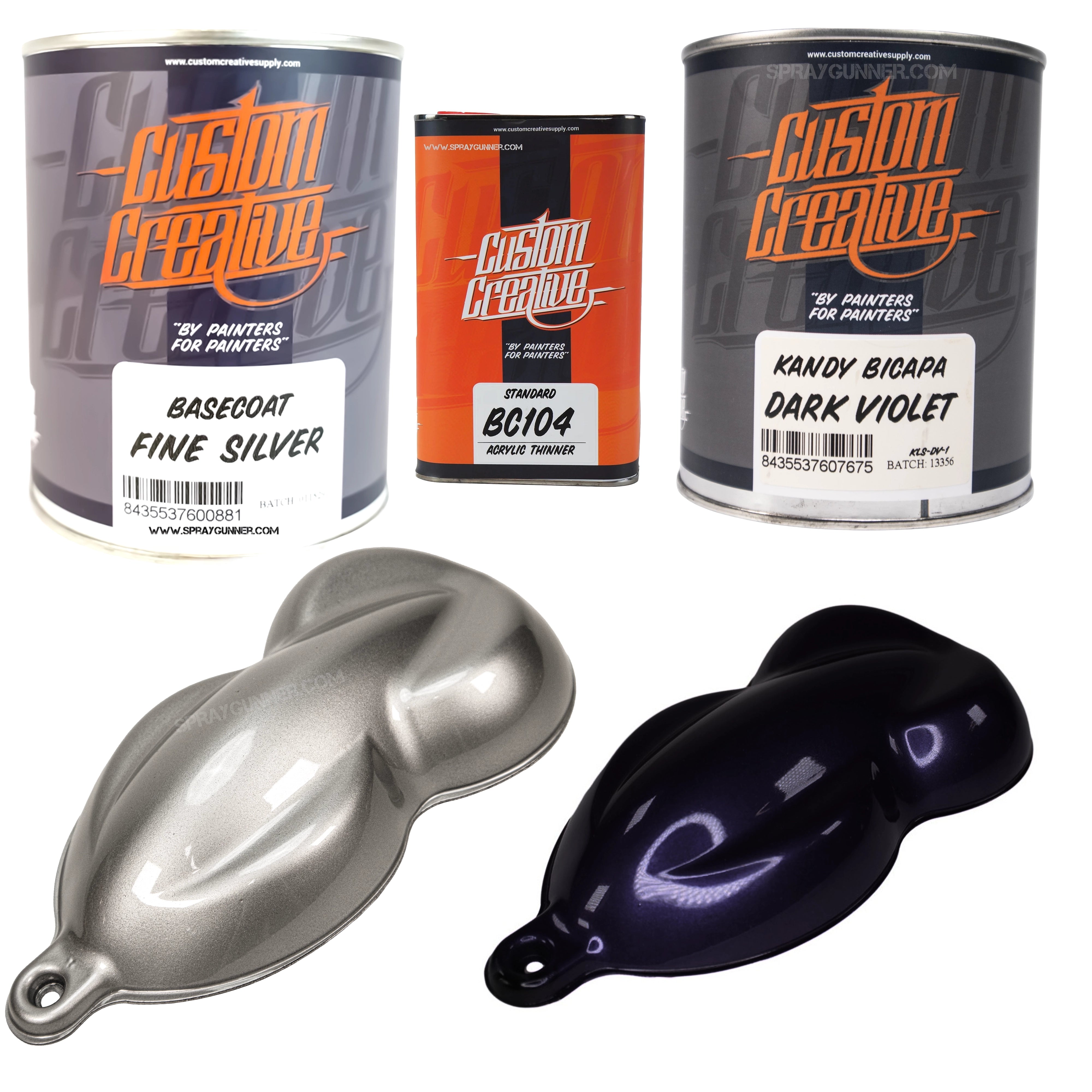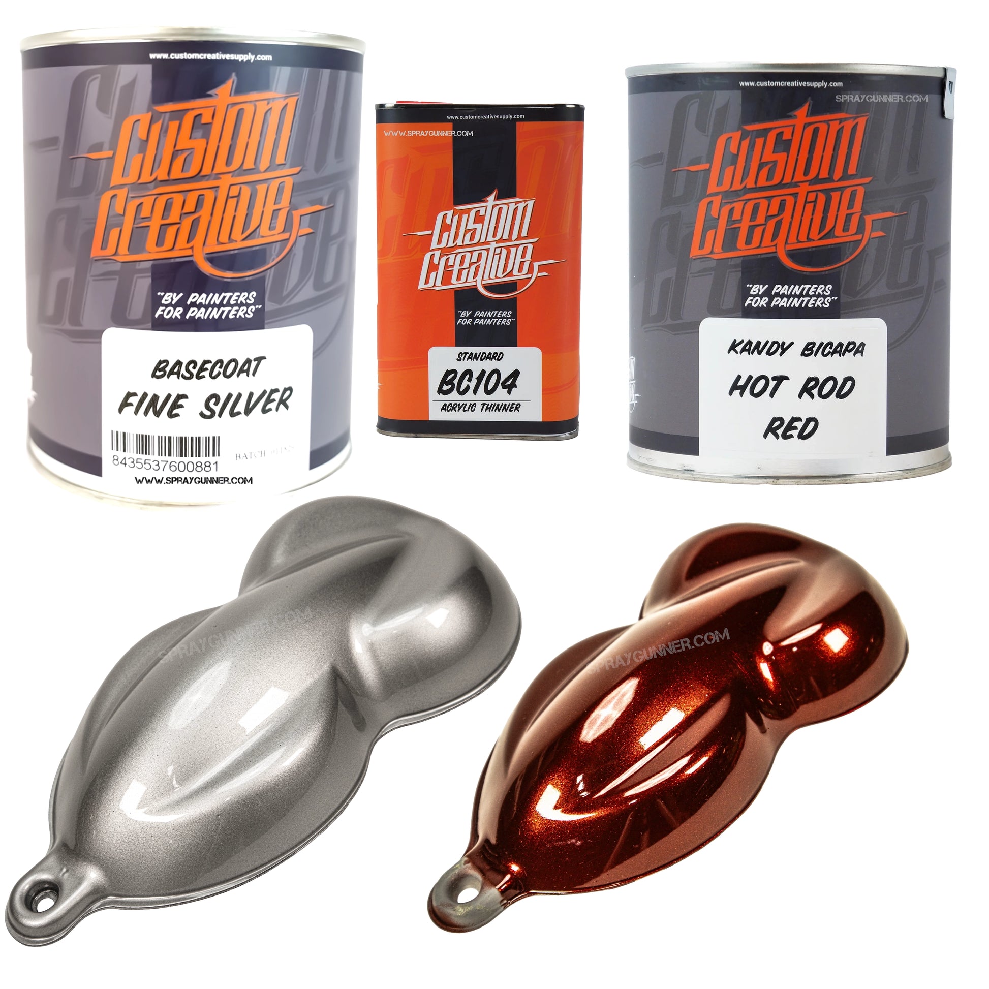 Upgrade your custom paint workflow with the Custom Creative Fine Silver + Kandy Paint Set, pairing a brilliant metallic base with your choice of high-intensity 1-liter Kandy colors. Whether you're creating deep candy fades, bold graphics, or high-impact show finishes, this set gives you exceptional coverage, easy application, and unmatched vibrancy—perfect for automotive, custom bikes, helmets, fine art, airbrush work, and more.
