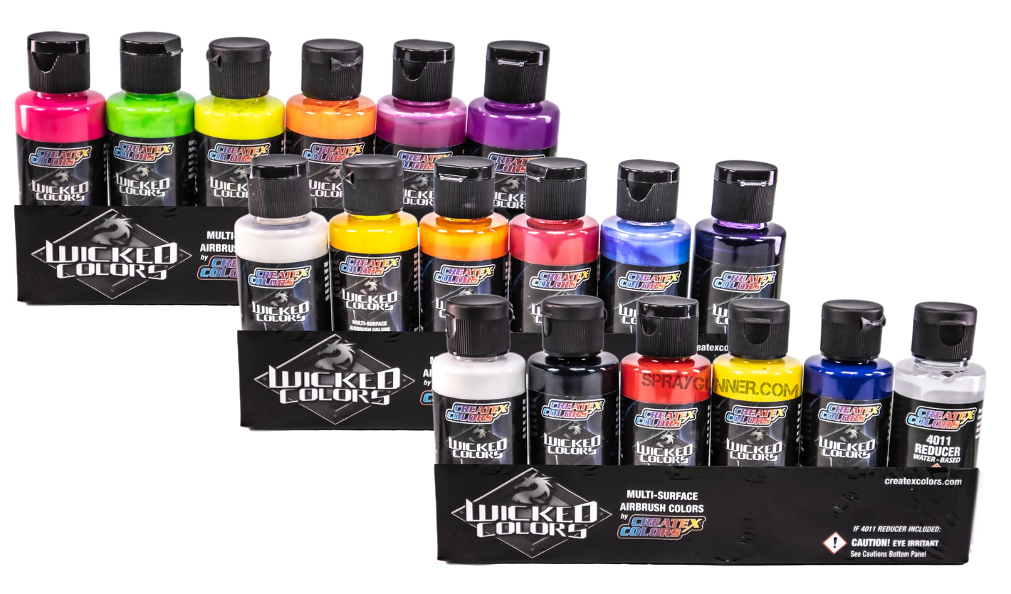 Createx Wicked Colors stand out as the ultimate choice in the extensive Createx water-based paint for airbrush collection. These paints offer unparalleled versatility, making them suitable for a wide range of applications. Whether you're an airbrush enthusiast or prefer using a full-size paint spray gun, Createx Wicked Colors deliver exceptional results on various hard surfaces. Their rich pigment concentration ensures vivid and long-lasting colors that can breathe life into your artistic creations.