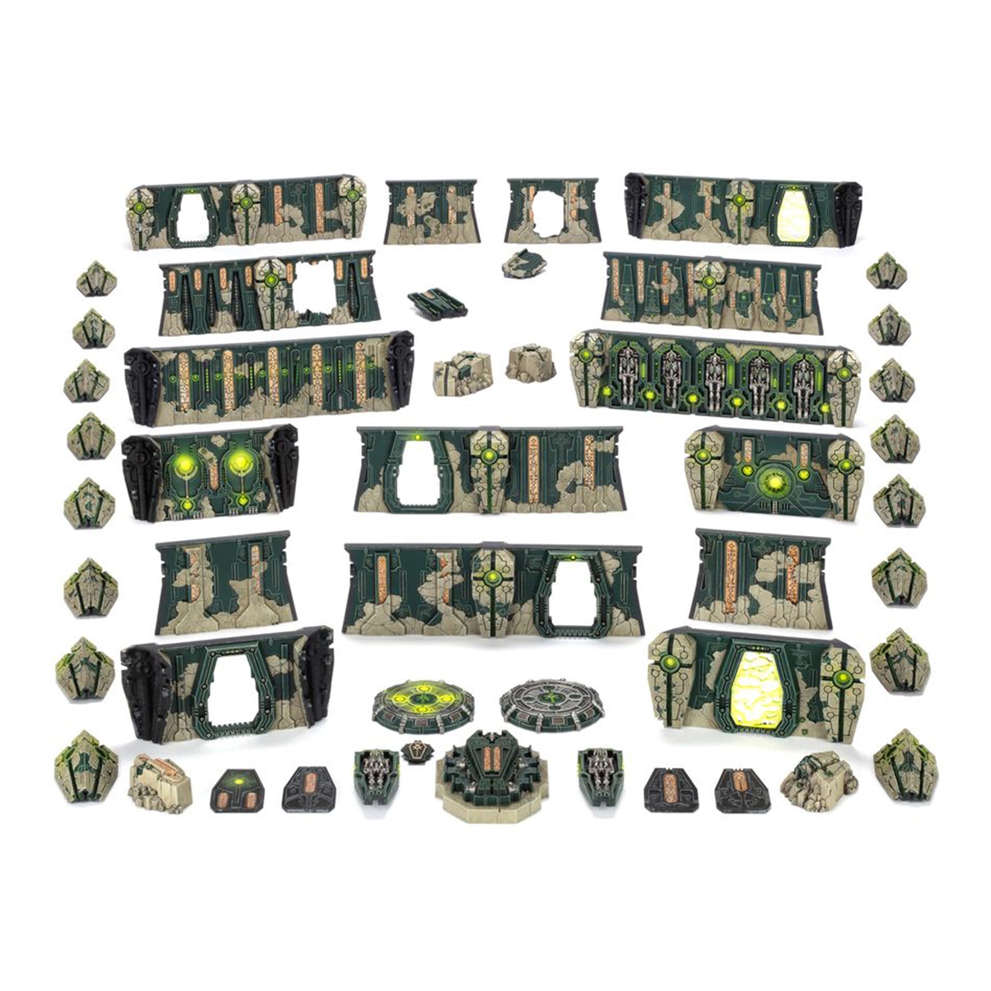 The Tomb Worlds of the Necrons are eternal mausoleums composed of strange xenos machinery. Within their labyrinthine corridors, you'll find teleport pads, deactivated Necron warriors, and a great many sarcophagi containing dormant Necrons and their constructs.