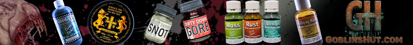 Whether you’re detailing a rusty mech, a mossy ruin, or a zombie horde, Dirty Down Paints by Goblin’s Hut will give your project unmatched realism. And SprayGunner is the place to get them.