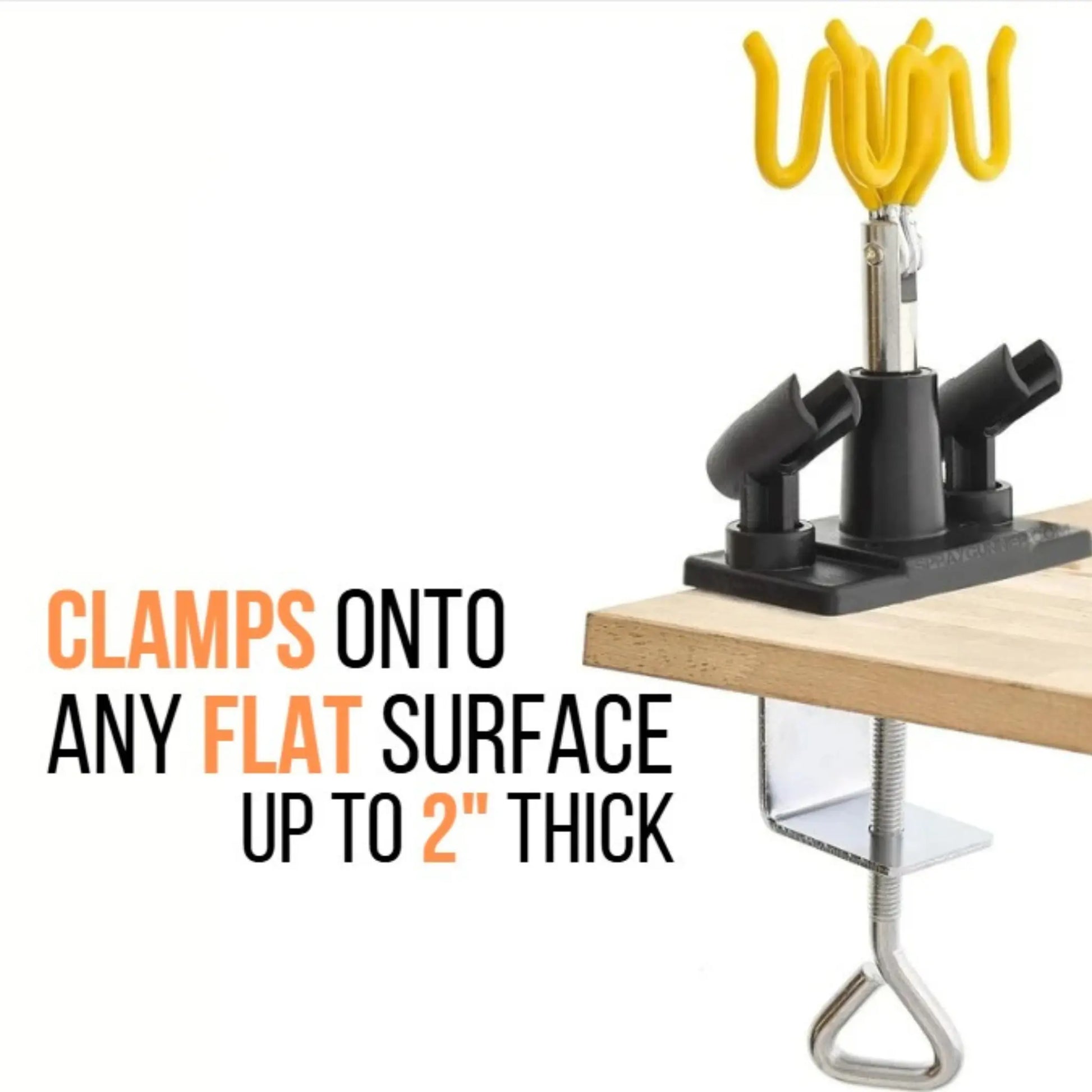 Efficiently organize up to four airbrushes with the Clamp Style Four Airbrush Holder by NO-NAME Brand, built for secure attachment to any table or workbench.