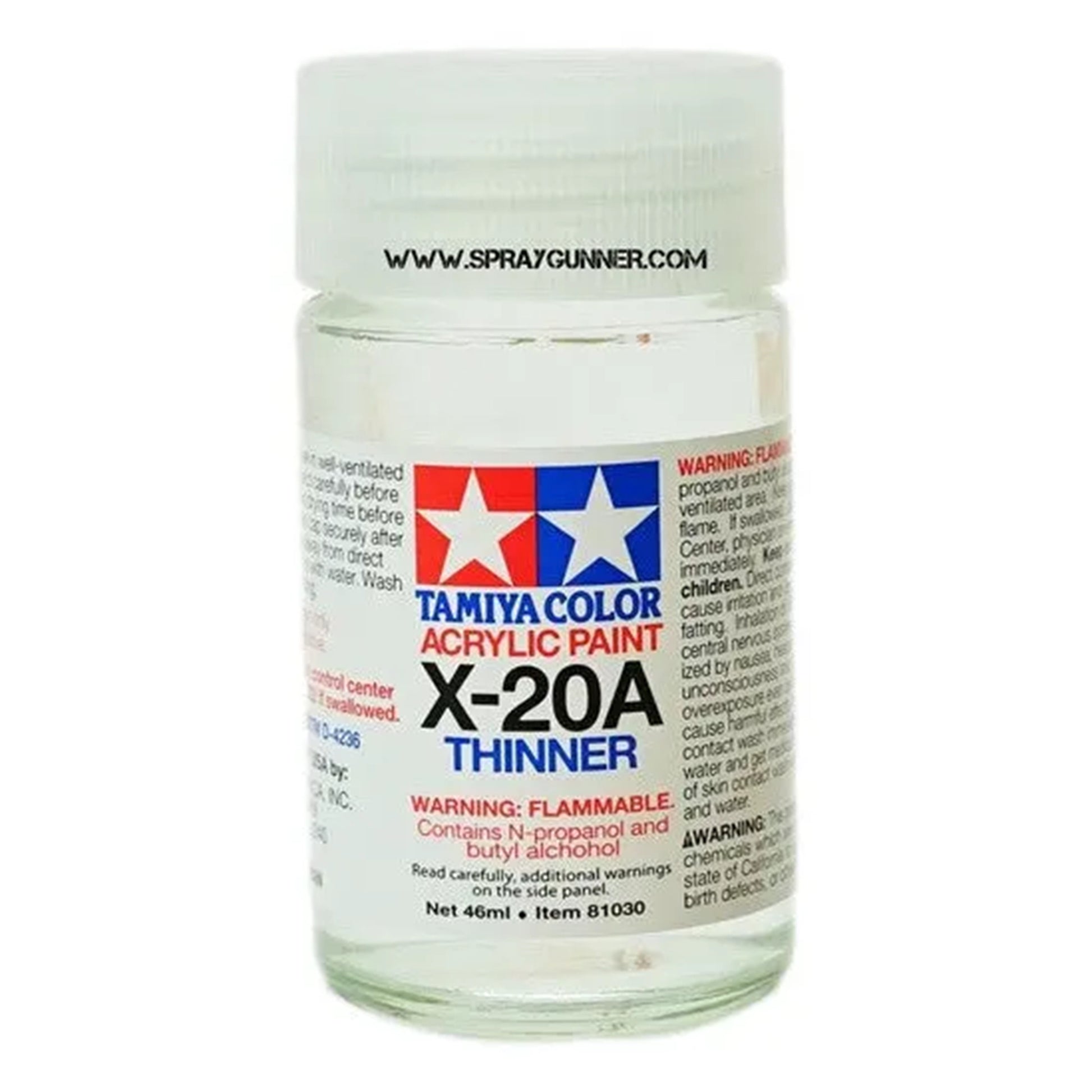 Tamiya X-20A acrylic thinner is the perfect choice to thin Tamiya acrylic paint when spraying through an airbrush or cleaning bristle brushes. The formula within the thinner gives Tamiya acrylic paints the right consistency to blend colors without fading or spotting. This bottle is 46ml in size.
