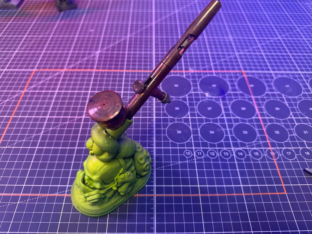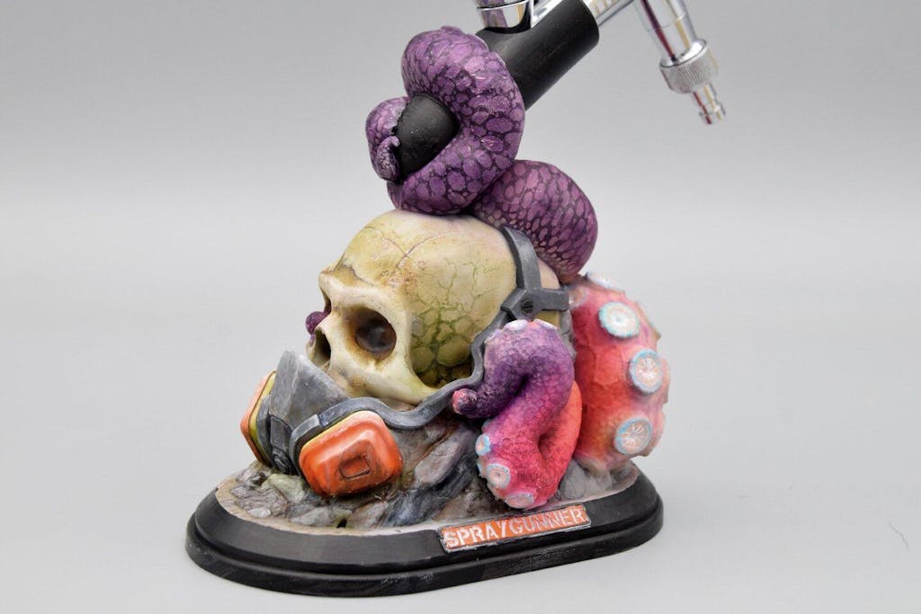 Embrace the spooky season with the Skull Airbrush Holder and Display Stand! This unique stand, designed by artist Bas Maatjes and made exclusively for SprayGunner, features a tentacled skull that securely holds your airbrushes while adding a haunting touch to your workspace. Crafted from durable material, the stand can be customized and painted to your style, allowing you to transform it into a true work of art. Whether for Halloween or year-round use, this functional display stand is perfect for artists who want a creative, eerie addition to their setup.