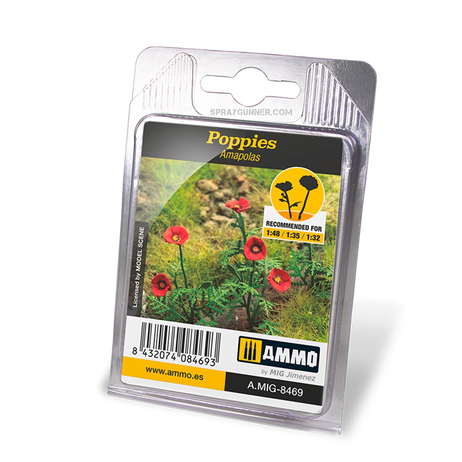 AMMO by MIG Laser Cut Vegetation - Poppies - realistic Laser Cut interpretation for scale modeling and diorama