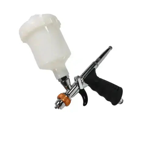 It is designed to mix paint with air at the exit from the airbrush head, allowing for precise control to achieve smooth gradients, fine details, and seamless blending that traditional brushes aren't able to achieve.