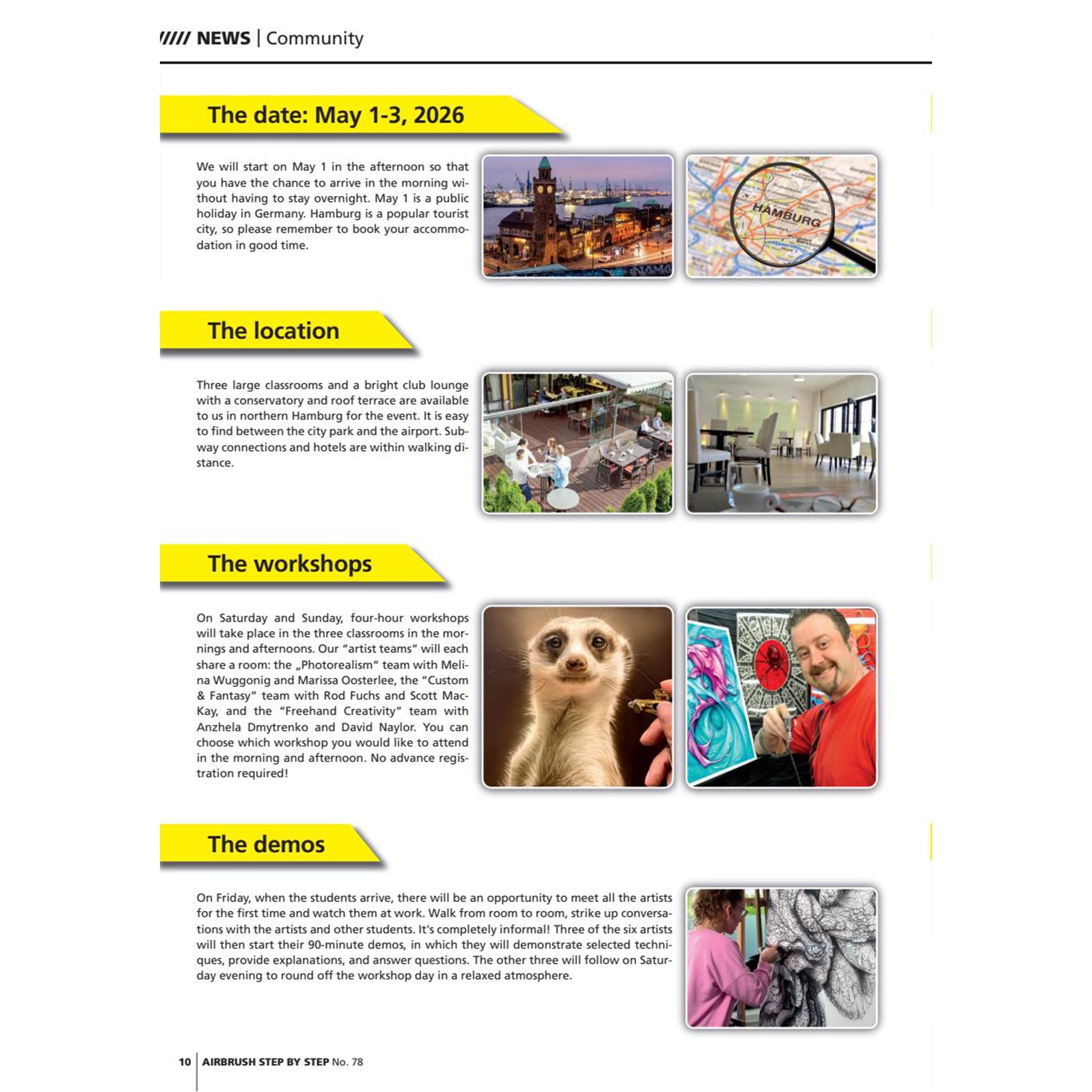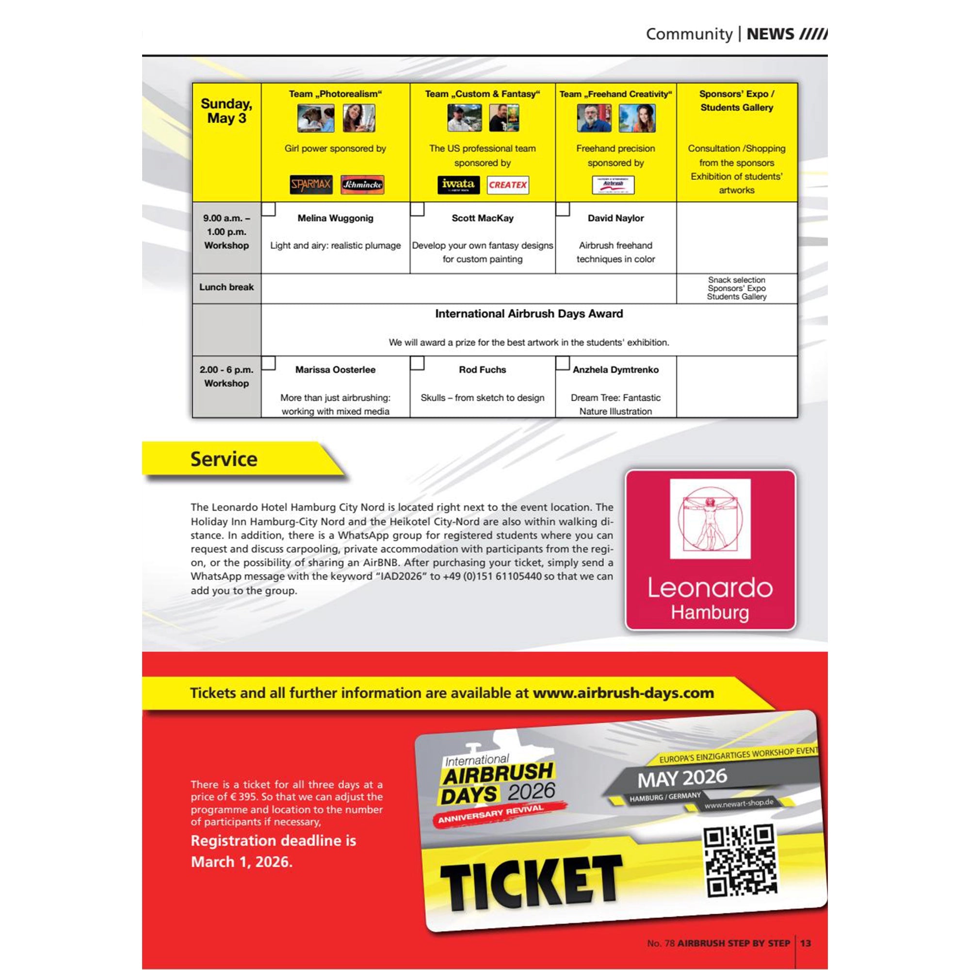 The airbrush workshop event took place for the first time in 2015, setting new standards with its conference concept and inspiring imitators worldwide. So, three anniversaries that we have combined in this issue: The issue is all about INTERNATIONAL AIRBRUSH DAYS 2026. All six “headliners” are already giving an insight into their work before you can watch them live in Hamburg from May 1-3.
