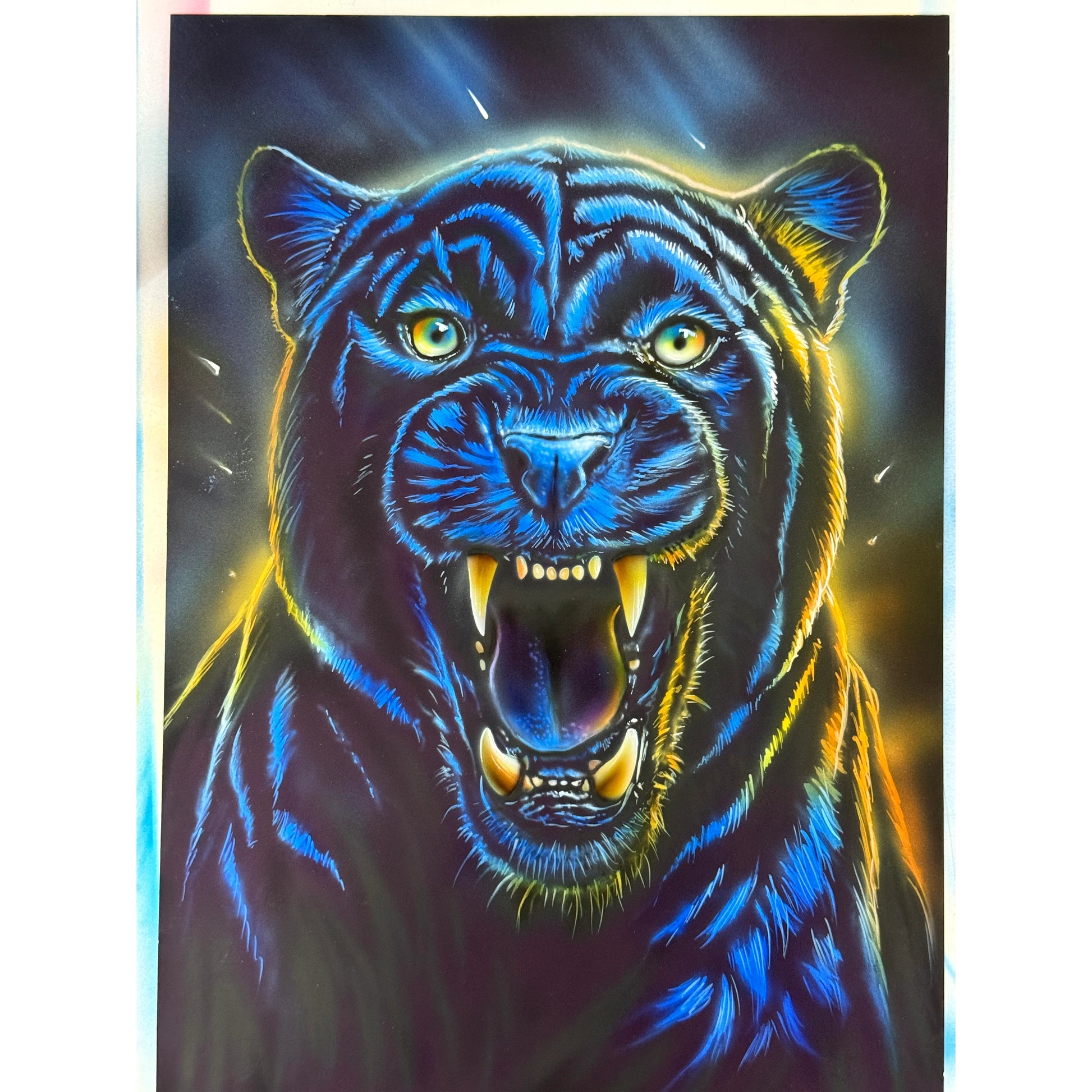 A layered, realistic wildcat design using stencil, airbrush, and brush