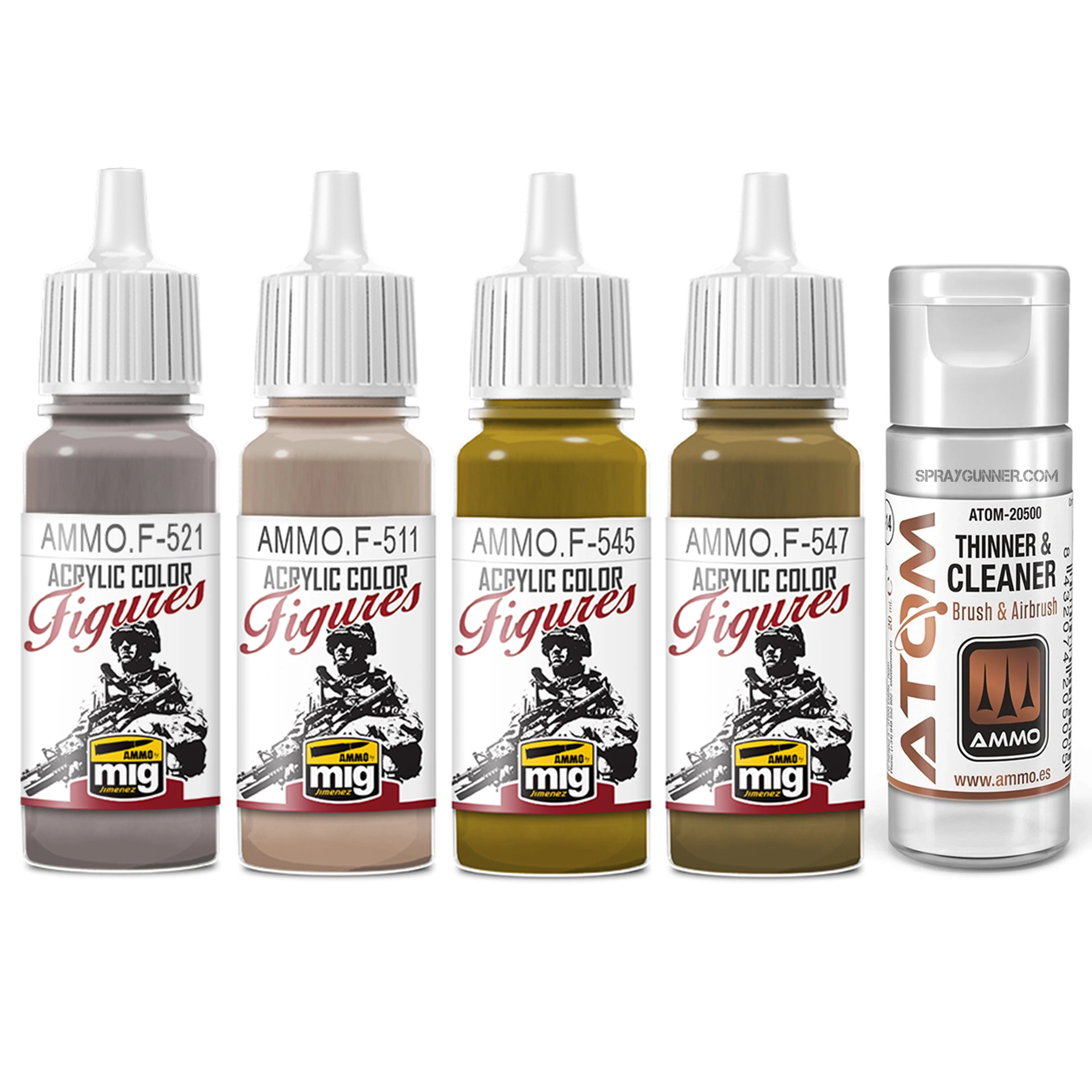 Bring natural, realistic earth tones to your miniature figures with a carefully selected range of browns designed specifically for high-performance figure painting. The AMMO by MIG Brown for Figures Version 2 Paint Set includes four expertly formulated acrylic colors plus a premium thinner to help you achieve smooth blends, warm highlights, and lifelike transitions—whether you paint with a brush or an airbrush.