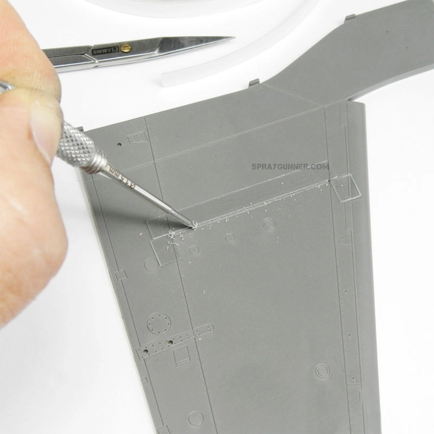 We recommend using a slightly flexible metal ruler or hard plastic tape such as A.MIG-8246 Scribing Tape Hard Edge as a guide to ensure accuracy.