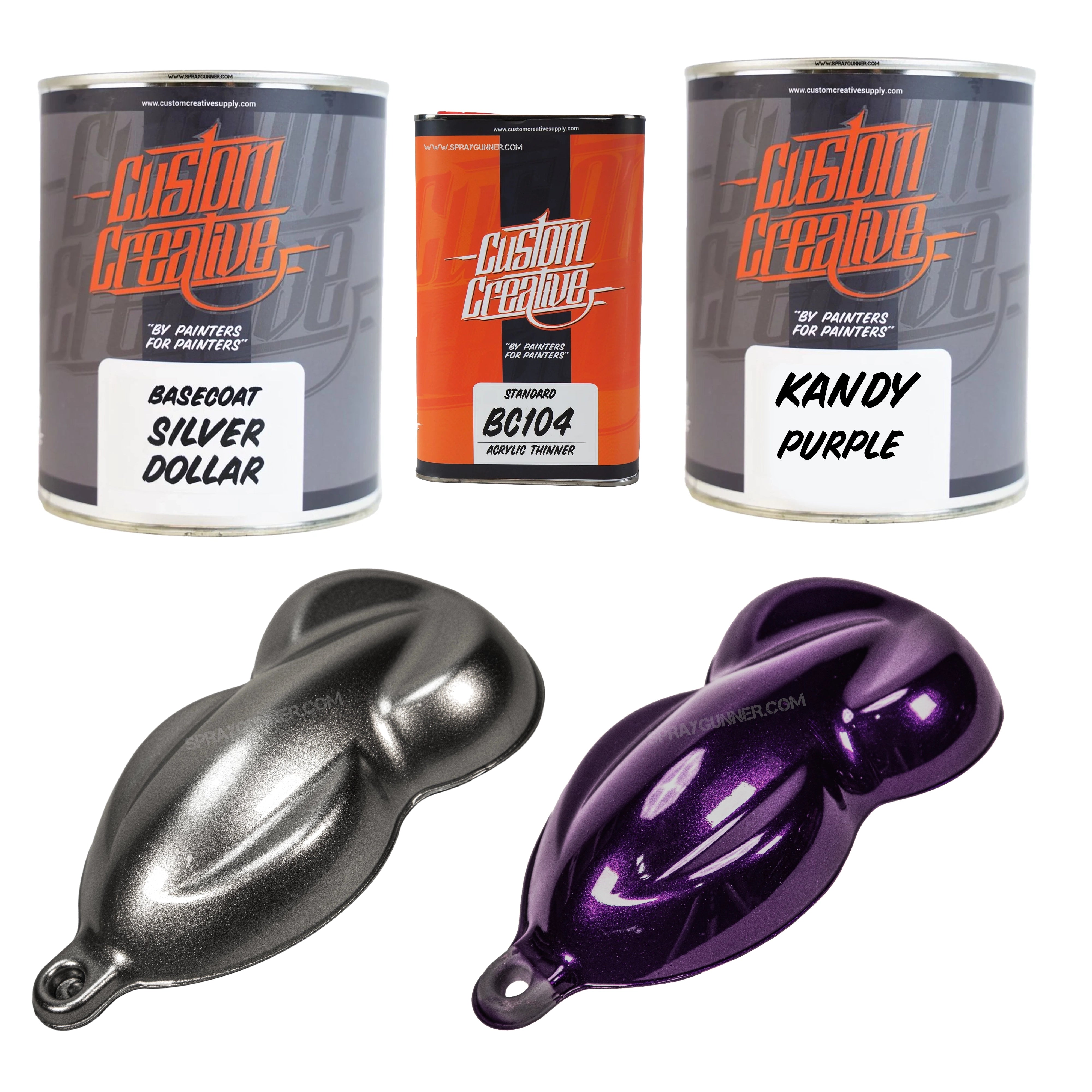 Upgrade your custom paint workflow with the Custom Creative Silver Dollar + Kandy Paint Set, pairing a brilliant metallic base with your choice of high-intensity 1-liter Kandy colors. Whether you're creating deep candy fades, bold graphics, or high-impact show finishes, this set gives you exceptional coverage, easy application, and unmatched vibrancy—perfect for automotive, custom bikes, helmets, fine art, airbrush work, and more.