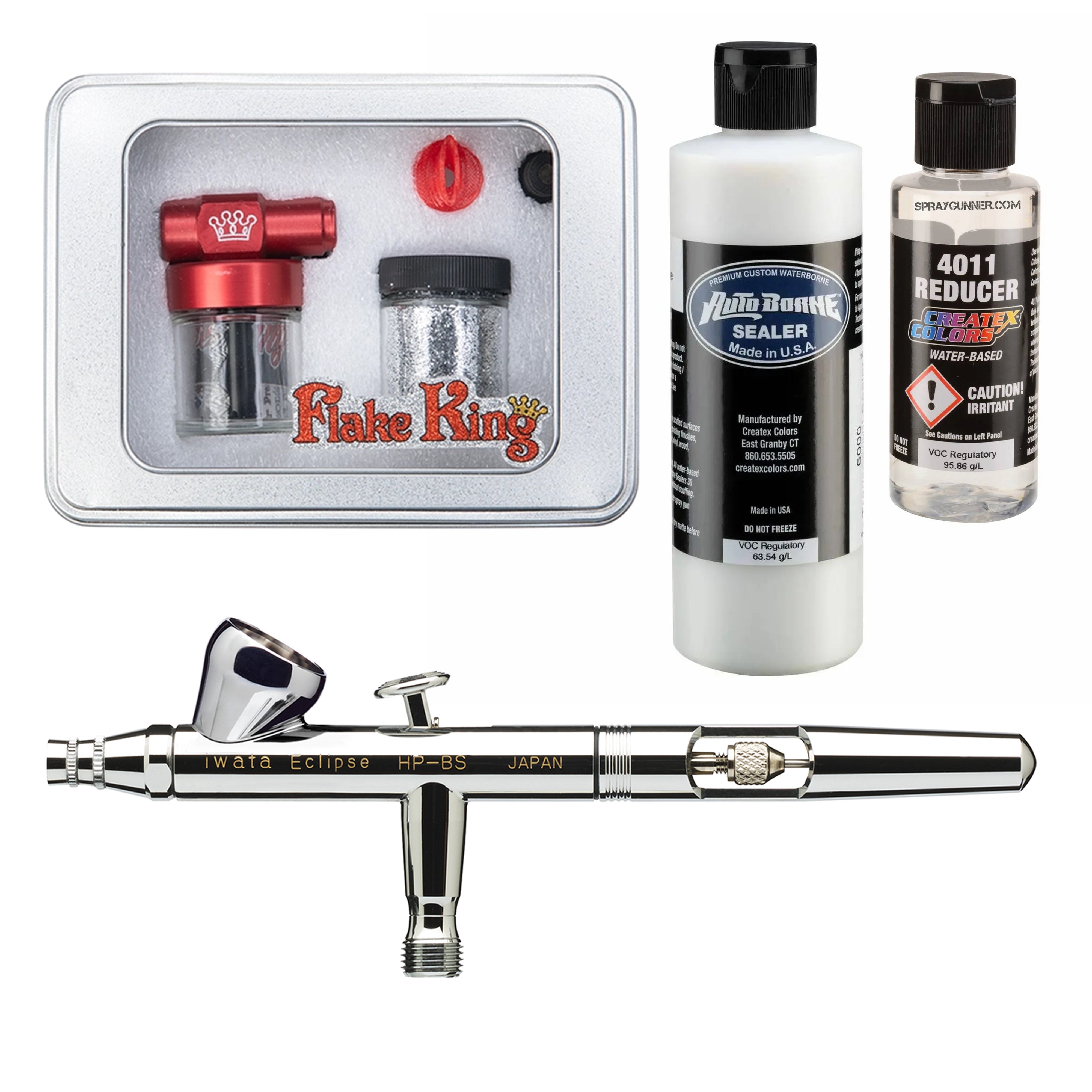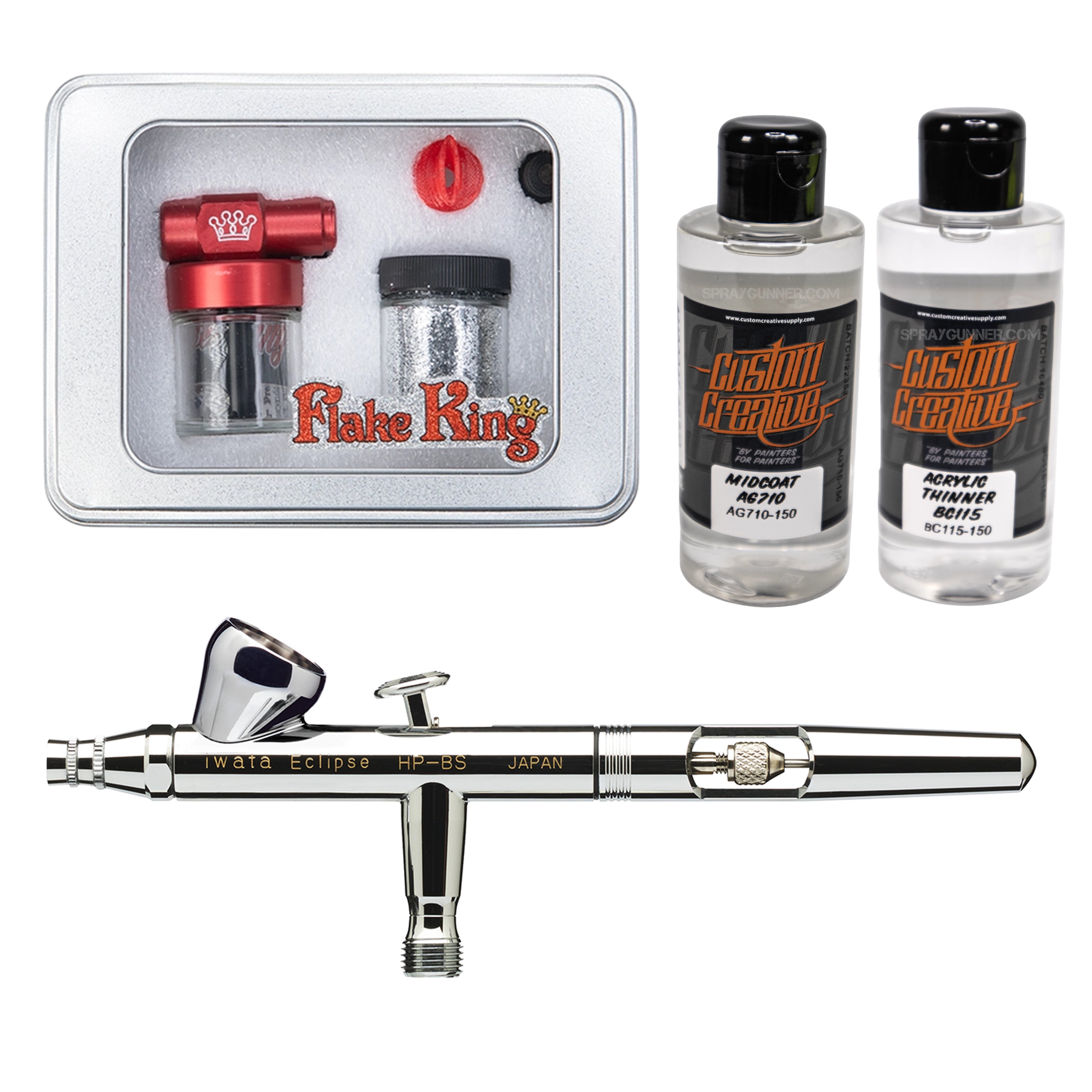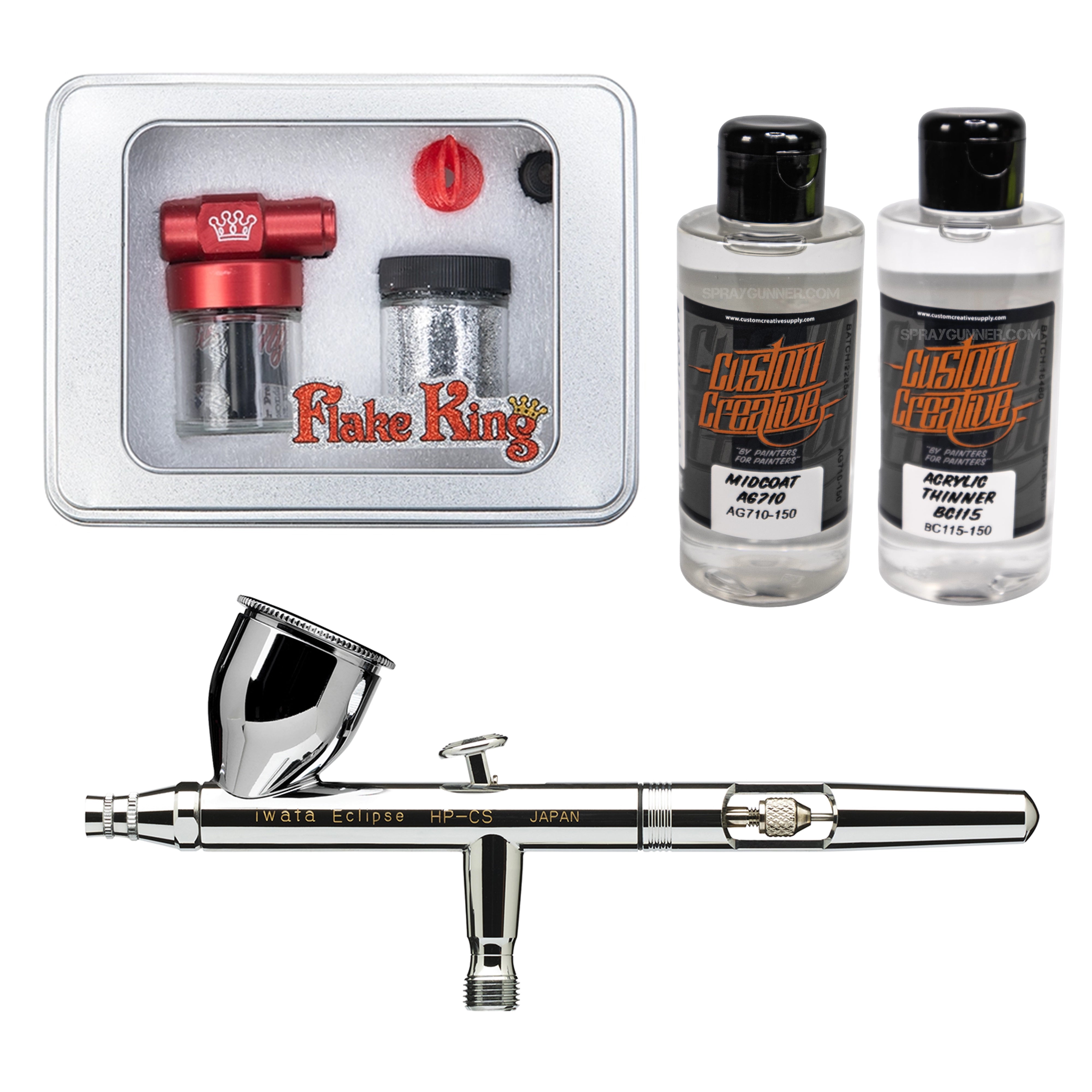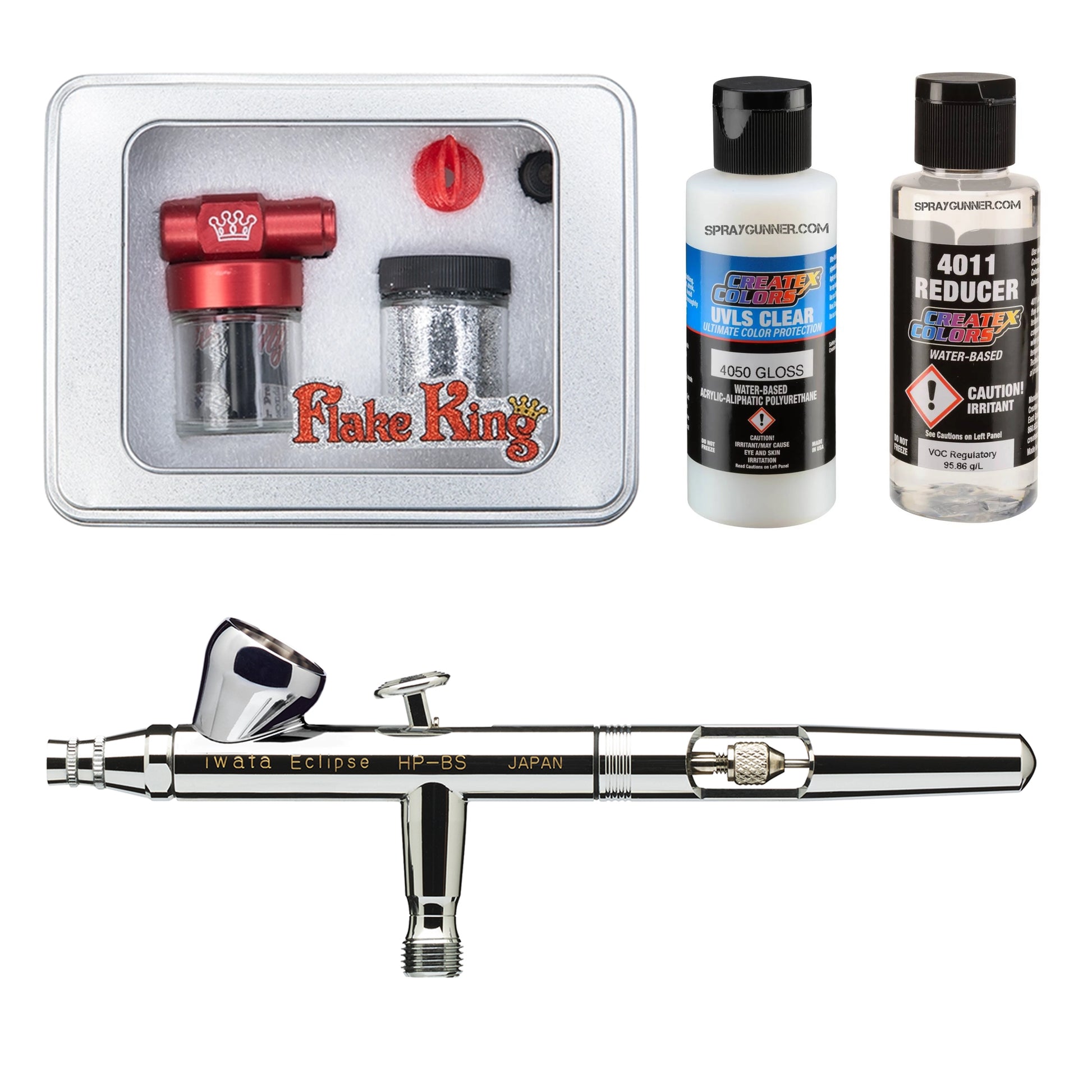 Flake King 500 Dry Metal Flake Airbrush Kit – Iwata Eclipse Airbrush + Clearcoat/Sealer/Intercoat Options