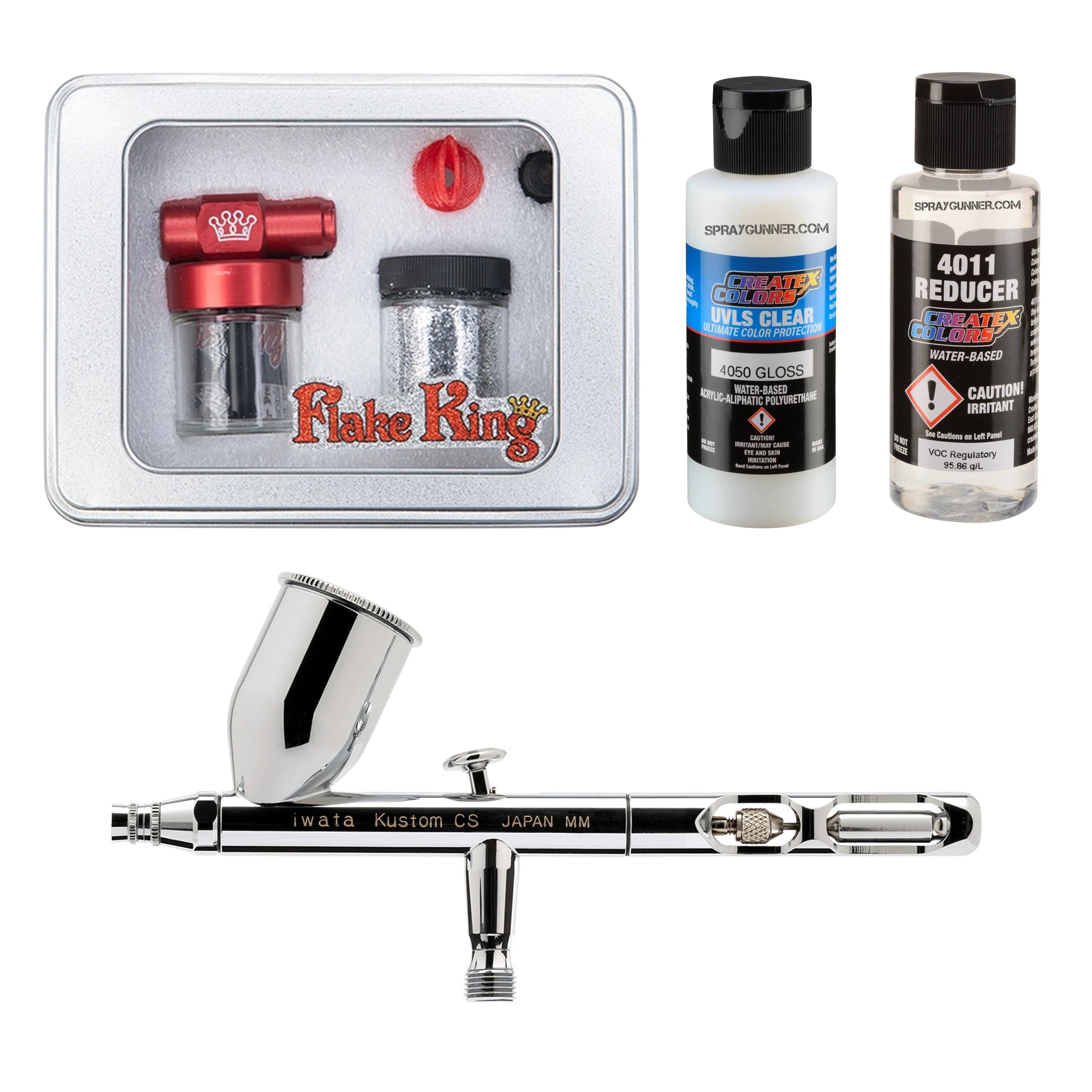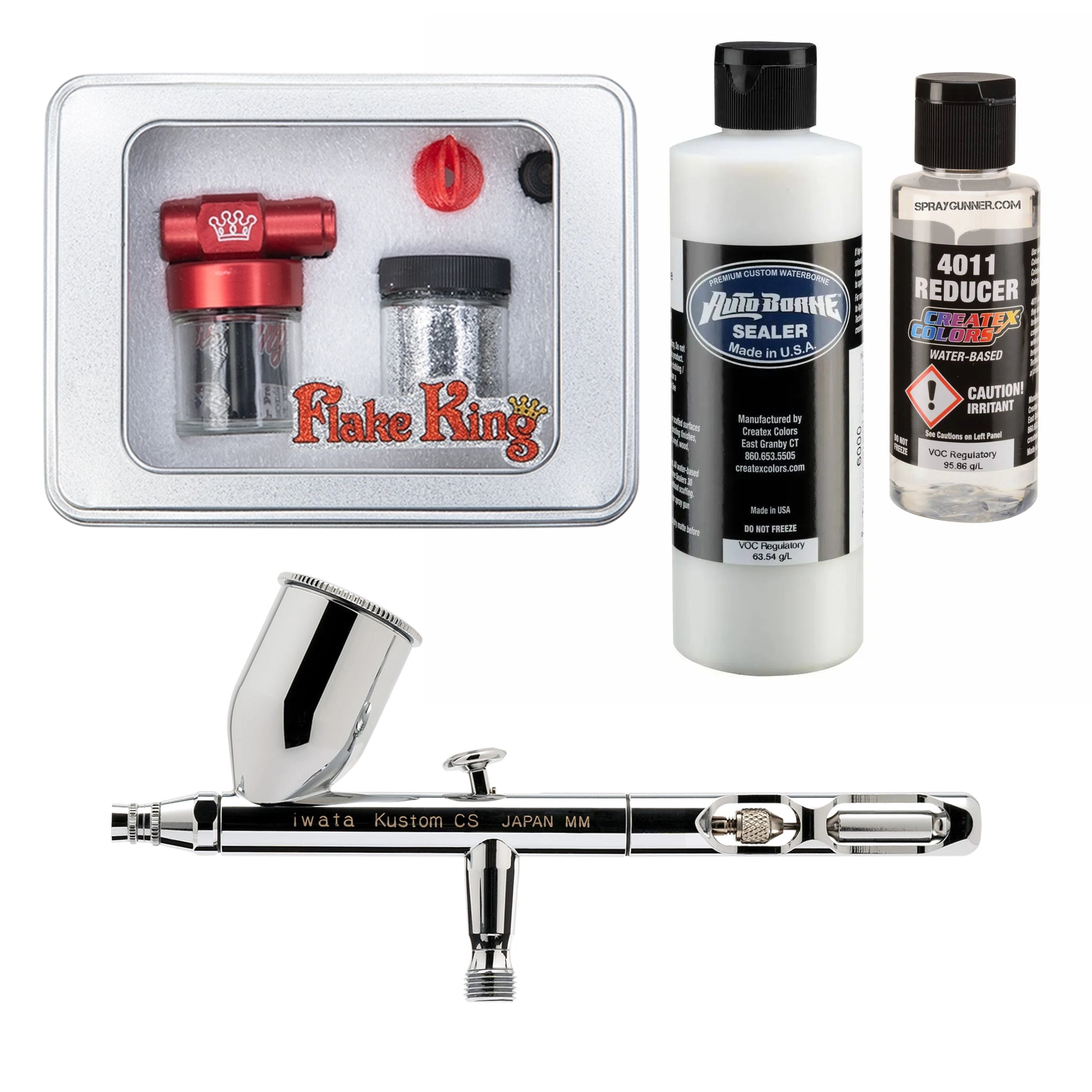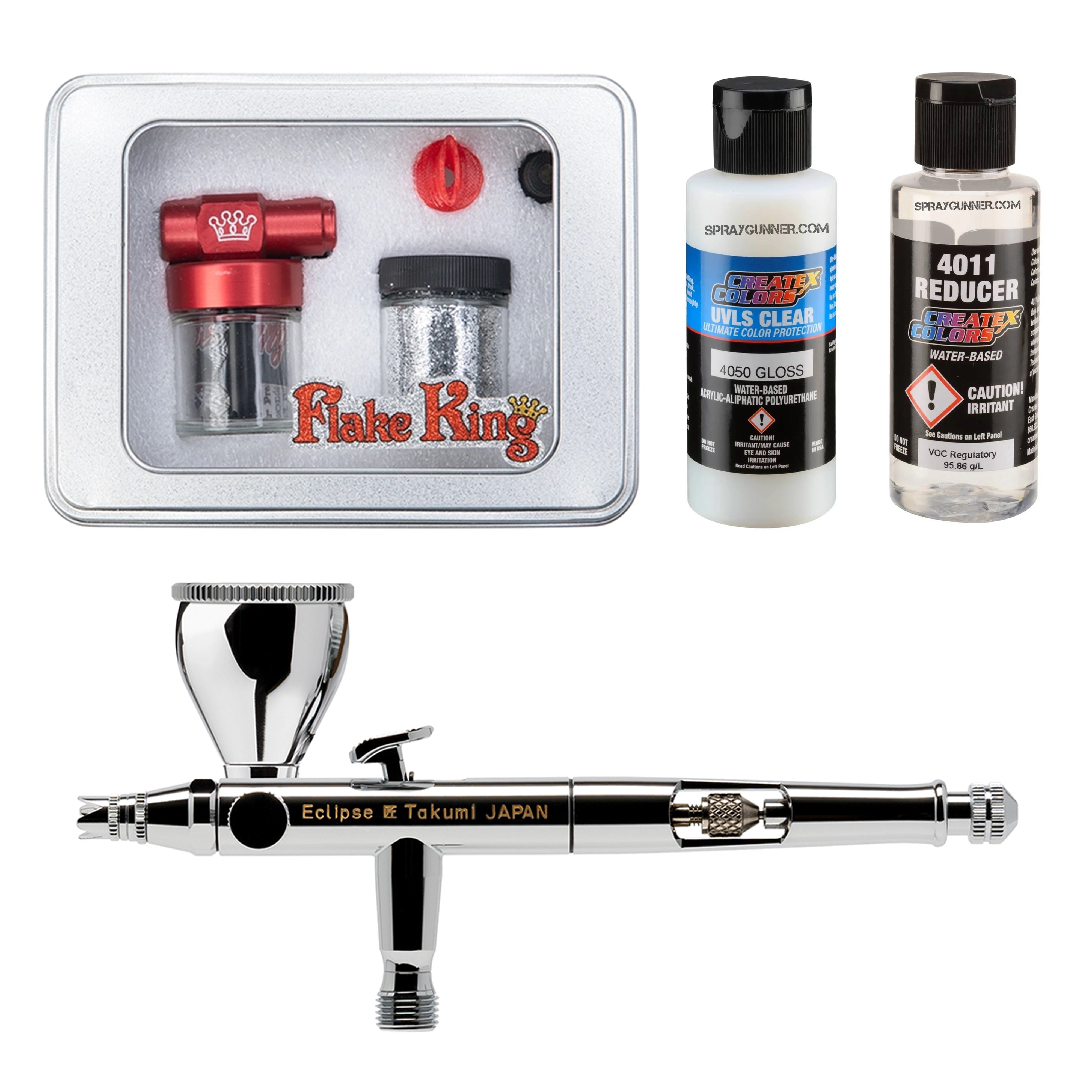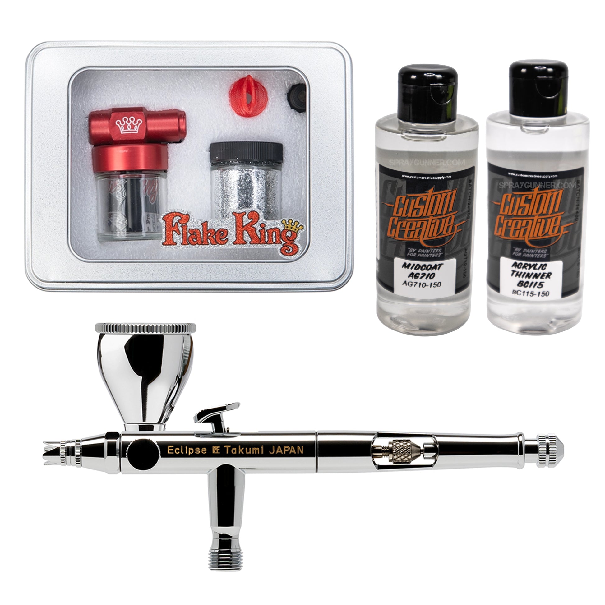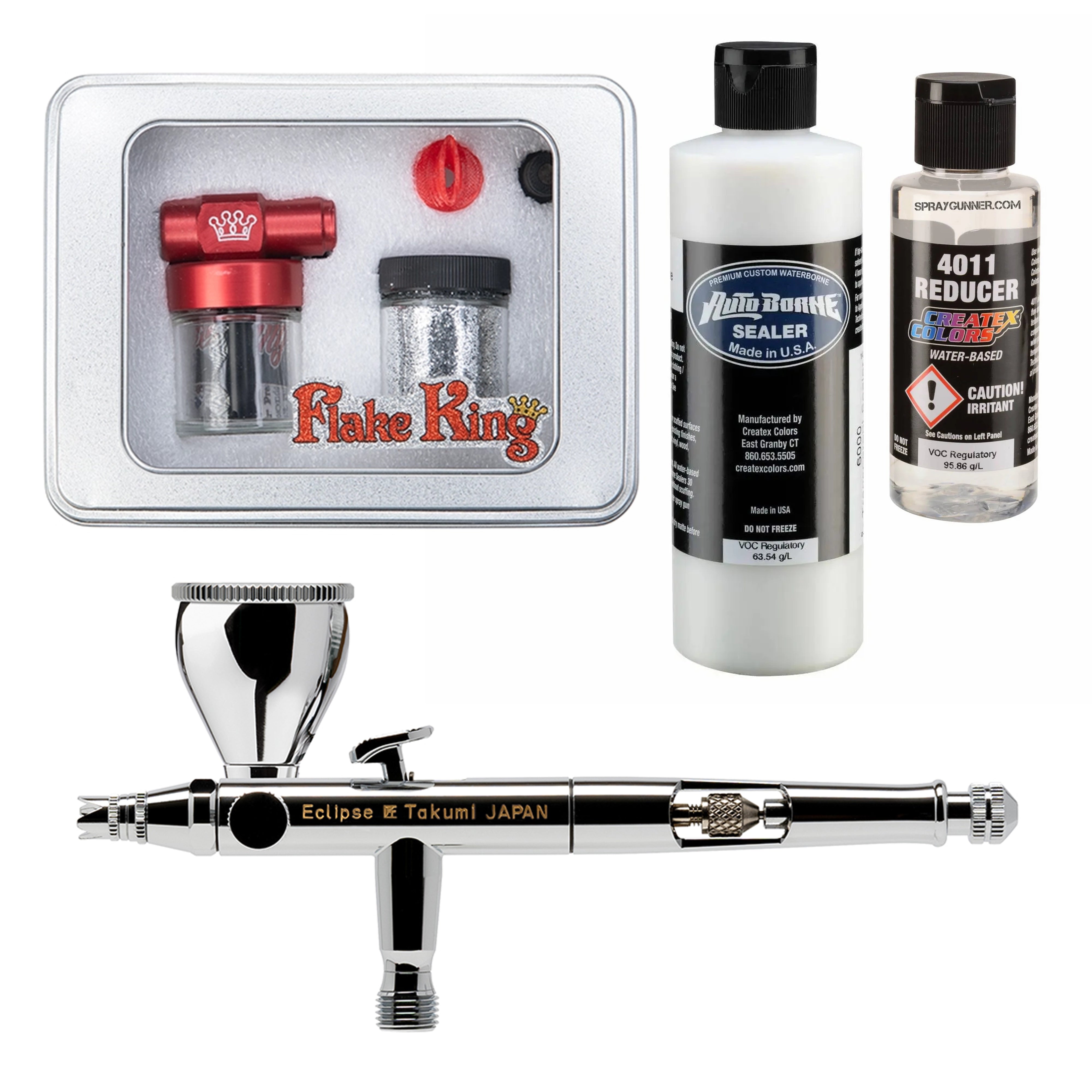 Flake King 500 Dry Metal Flake Airbrush Kit – Iwata Eclipse Airbrush + Clearcoat/Sealer/Intercoat Options