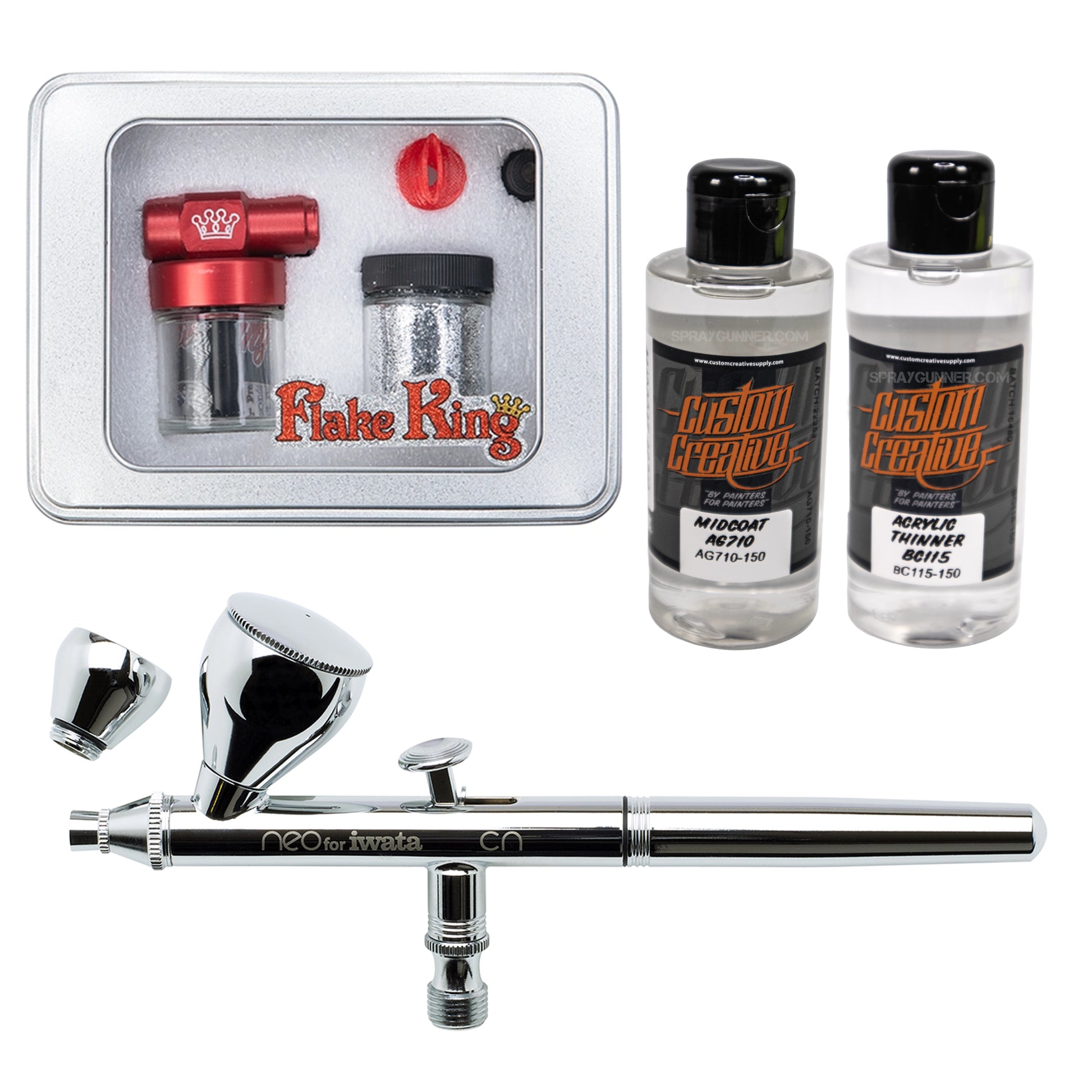 Flake King 500 Dry Metal Flake Airbrush Kit – NEO for Iwata CN + Clearcoat, Sealer & Intercoat Options