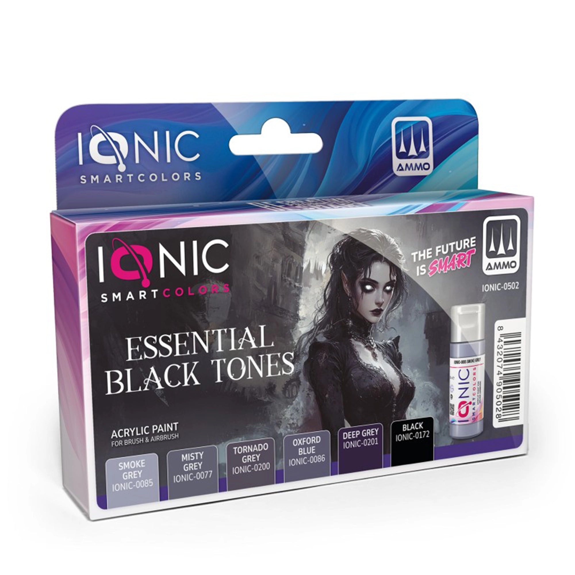 Master the art of painting black with the Ionic Black Noir Paint Set, your ultimate solution for tackling one of the most challenging colors. This carefully curated set features six versatile shades and tones, providing everything you need to paint black with precision and ease, no matter the material.