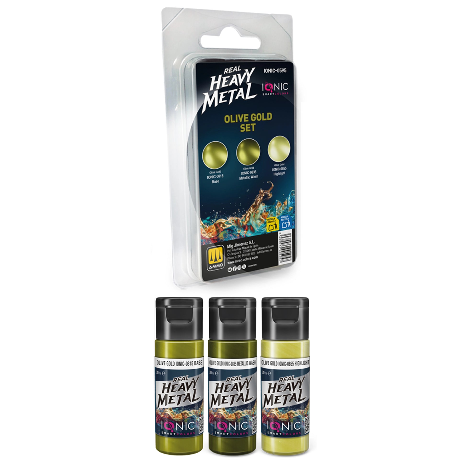 IONIC Real Heavy Metal Colors: Olive Gold Paint Set (3x20ml)