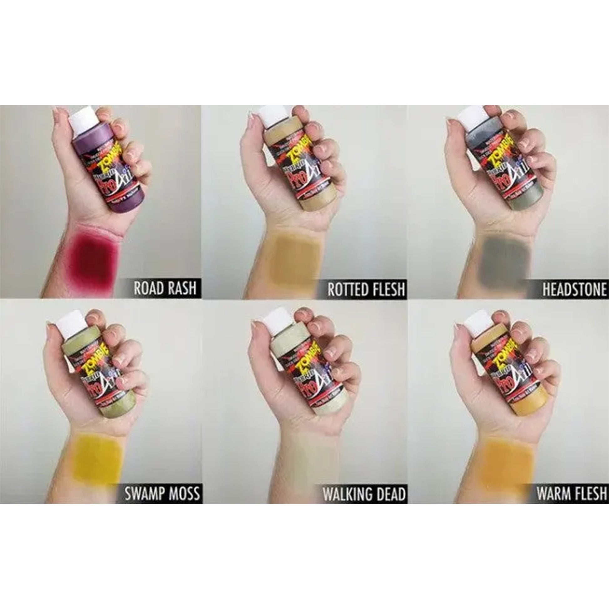 This terrifying pack includes 6 chilling colors: Scab, Pus, Blood Red, Vein, Pale Dead, and Dirt. These hues are perfect for creating realistic and spine-chilling zombie effects. Whether you're preparing for a Halloween party or working on a film set, the ProAiir Hybrid Formula: Zombie II Collection is the ultimate choice for professional results.