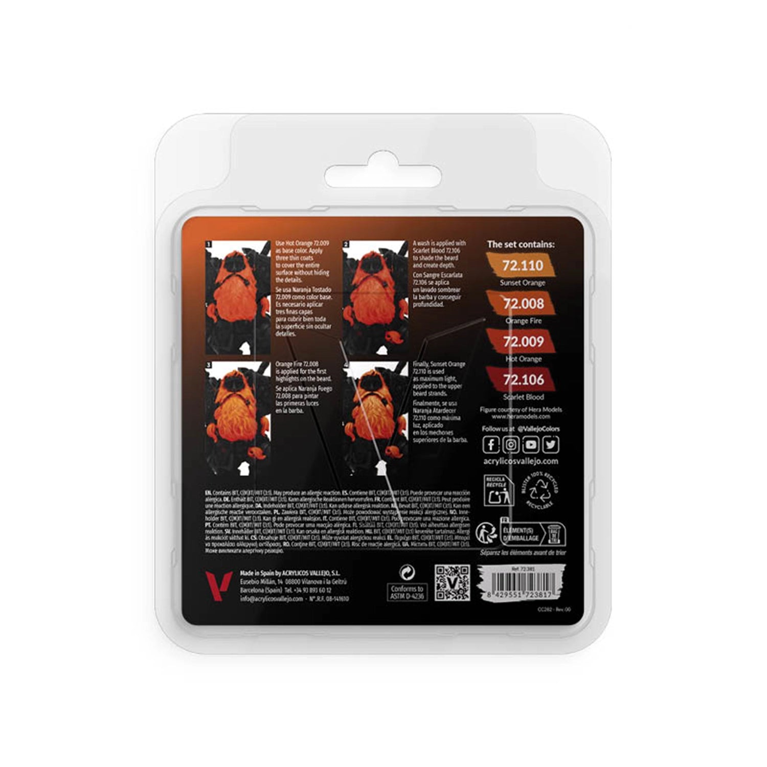 The set contains four shades for painting orange, with a vibrant and saturated finish: a base color, a shadow color and two highlighting shades.