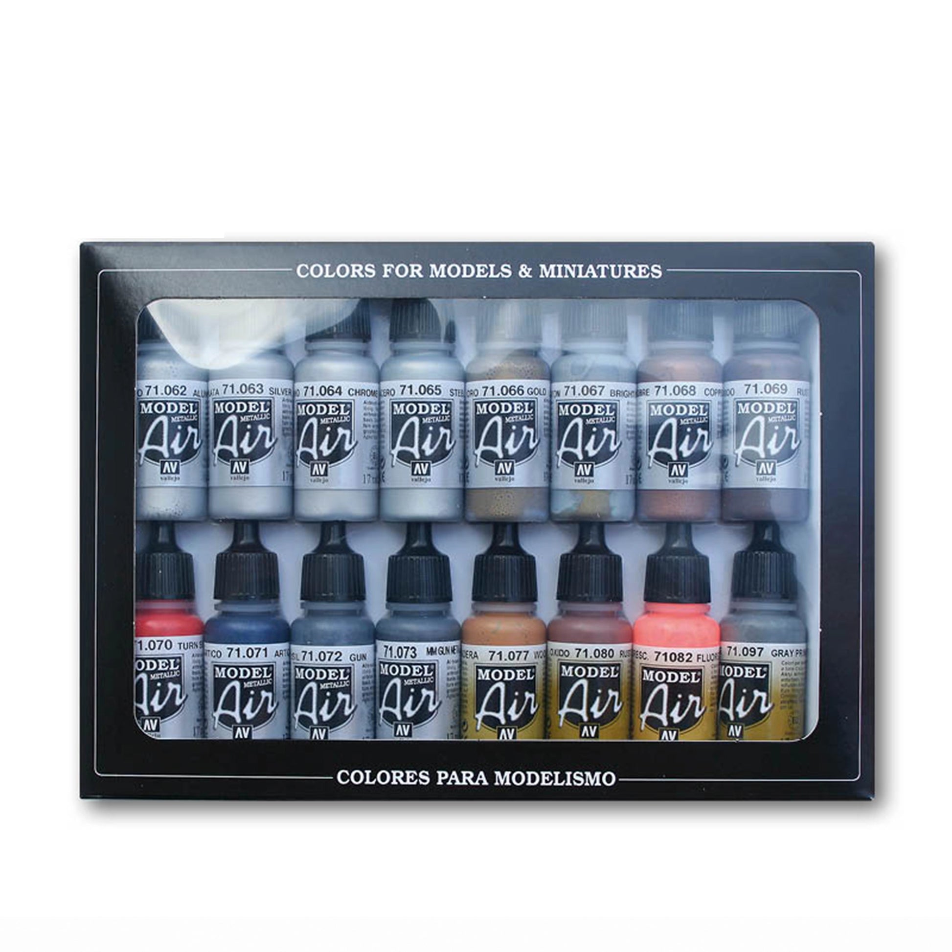 Vallejo Model Air Set: Metallic Effects Paint Set (16ct)