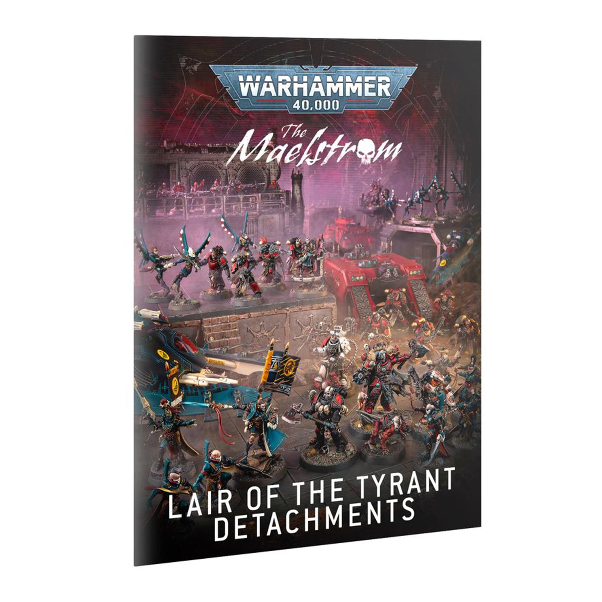 – The Maelstrom: Lair of the Tyrant – Detachments – A 16-page softcover booklet including two new detachments for Chaos Space Marines (Huron's Marauders and Renegade Warband) and Aeldari (Eldritch Raiders and Corsair Coterie), one for the Orks (Freebooter Krew) and another for the Leagues of Votann (Mercenary Oathband).